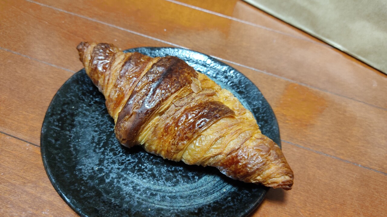 表面はサクッとパリっとしており 生地はふんわりと言うより しっとりモチっとしていてバターを感じる美味しいクロワッサンでした。
