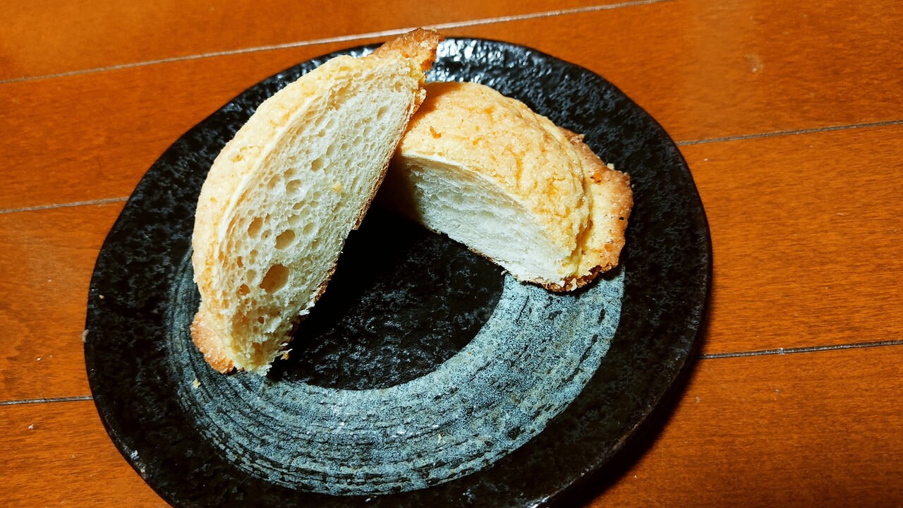 めろんパンの底面のカリっとしている生地を割って食べましたが完全にクッキーで美味しく頂けました。