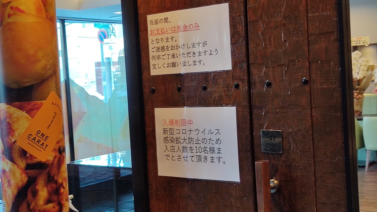 ばり混んどるなぁと思い列に並び10分以上待っていると やっと扉の前まで進むことができ 張り紙を見ると 入店制限がされており10名までしか入れない仕様でした。