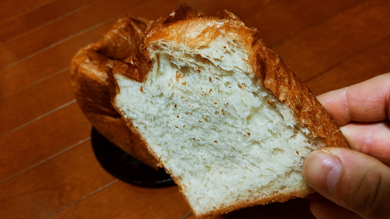肝心の生地は しっとりとしていてモチっとしたバターや小麦の風味を感じられる美味しい食パンでした。