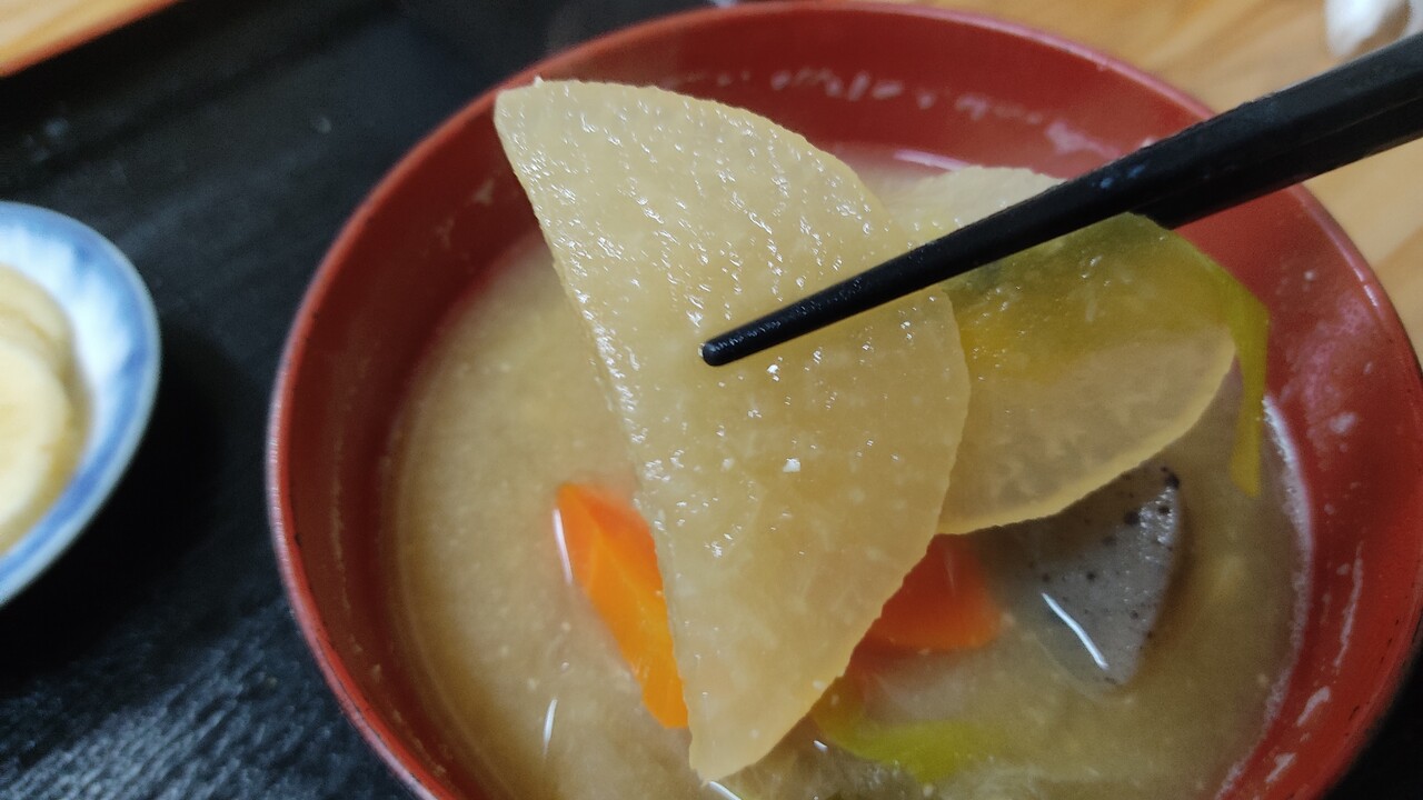 豚肉が入っていれば豚汁 そんな感じの味噌汁ですね。
