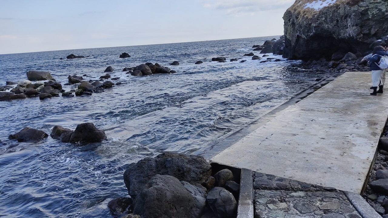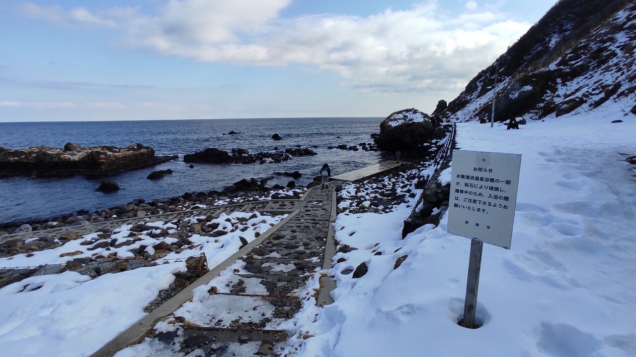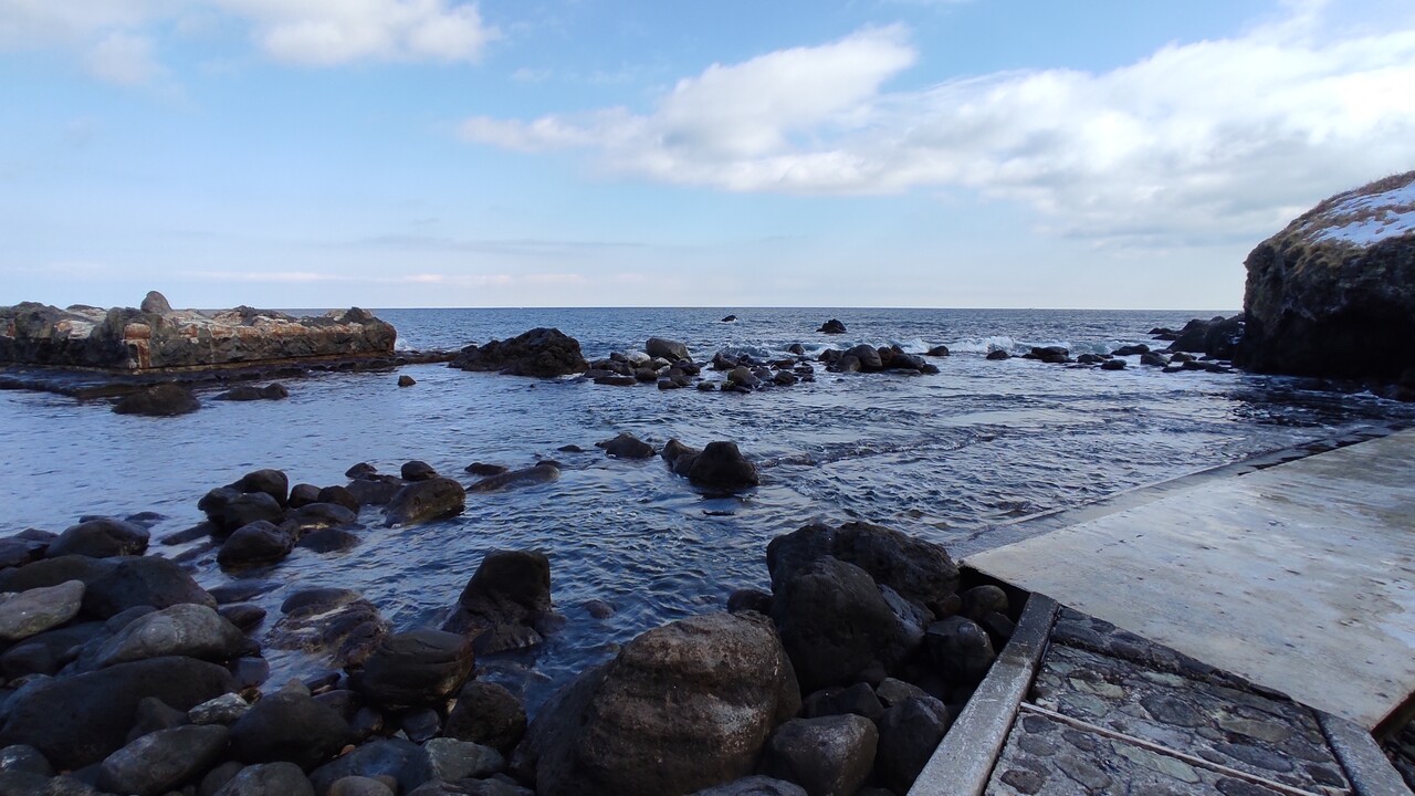 南茅部の 寿し処山昇さんで 美味しい 「がごとろ」ぶっかけ!海鮮バラちらしセット を堪能した後に 折角遠出したので 干潮時にしか入ることの出来ない温泉 水無し海浜温泉へ行ってきました。