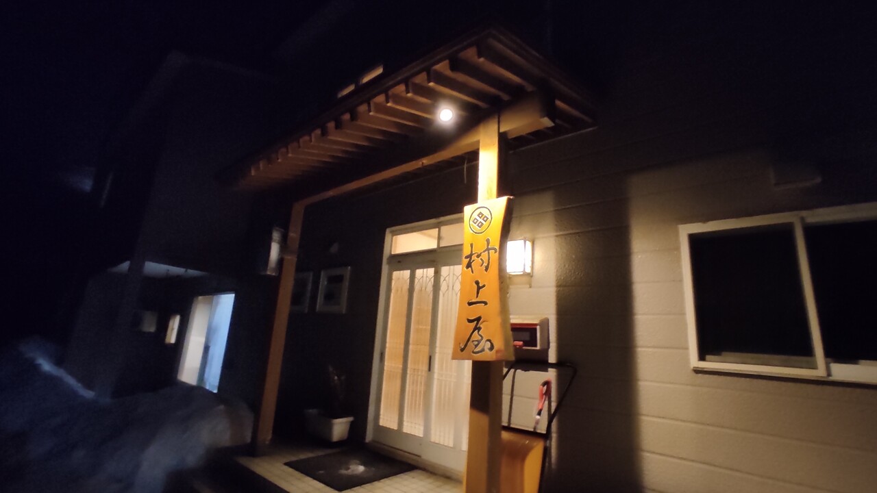とある日の夜に何故か知内町の秘境こと小谷石におり宿泊施設 民宿ムラカミヤさんの前に立ち尽くしておりました。