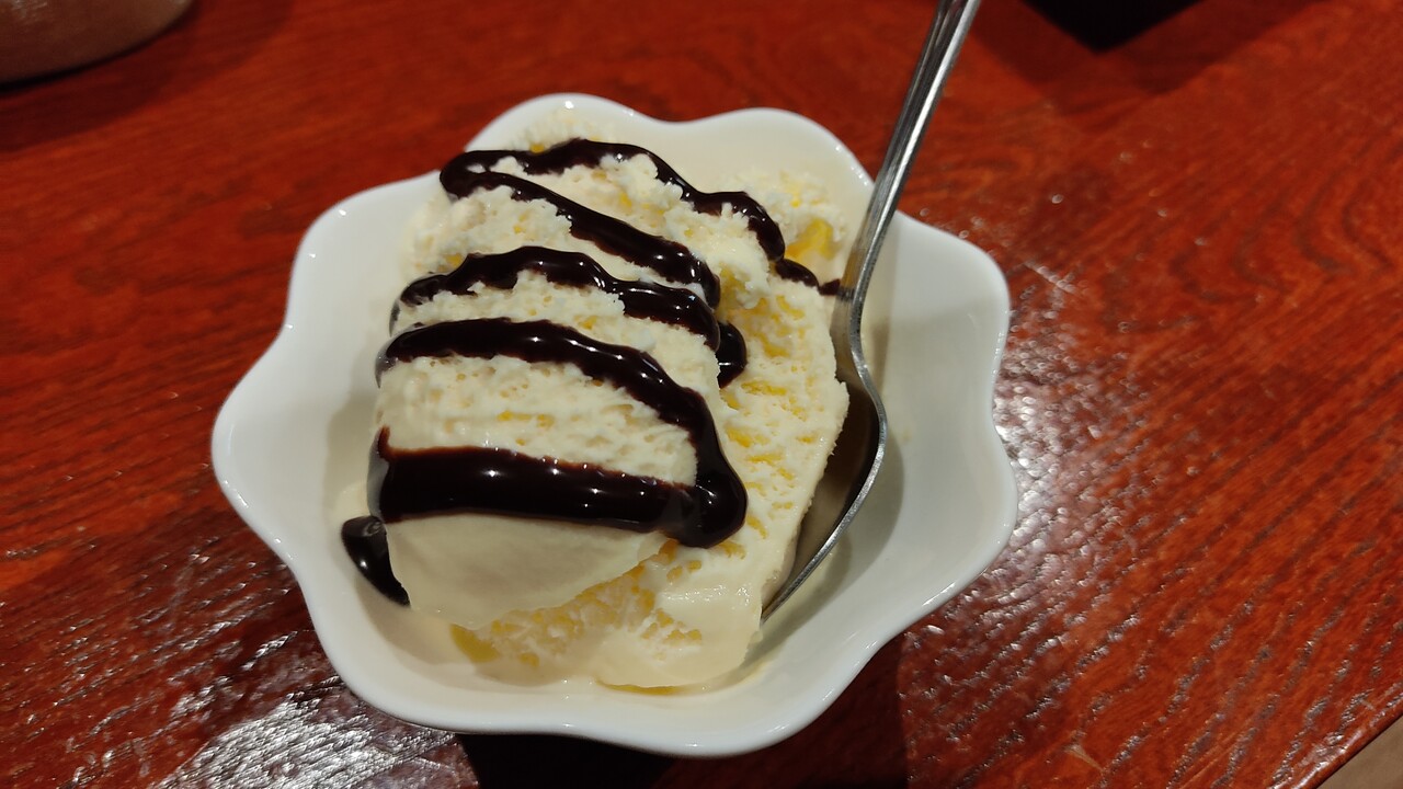 塩気のあるものを食べ進めていたので 甘く冷たいアイスクリームは口の中をリフレッシュし 夕食の〆としては最適でしたね。