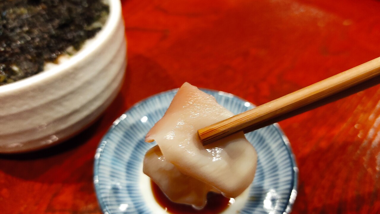プリプリっとした食感で脂が甘く一枚づつなんて食べてられません。2枚、3枚、5枚と一気に箸で掴んで食べてしまいましょう美味い!