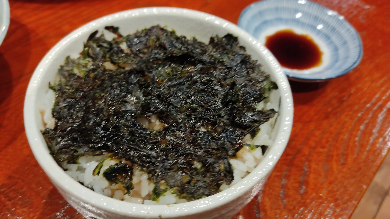 話を聞くと この岩海苔は ムラカミヤのこうすけさんの母親が摘まれた岩海苔という事で 知内産の岩海苔 一番摘みを贅沢に使用された岩海苔ご飯になります。
