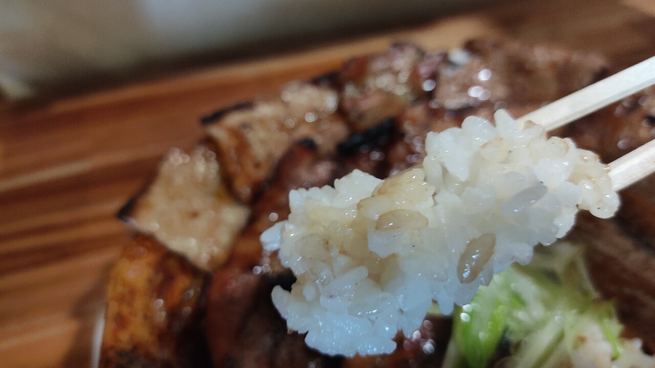 ご飯とお肉を一緒に食べたくて口に放り込むと…