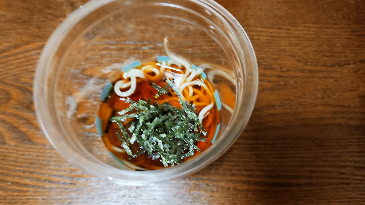 カップの中に蕎麦が入っておます。