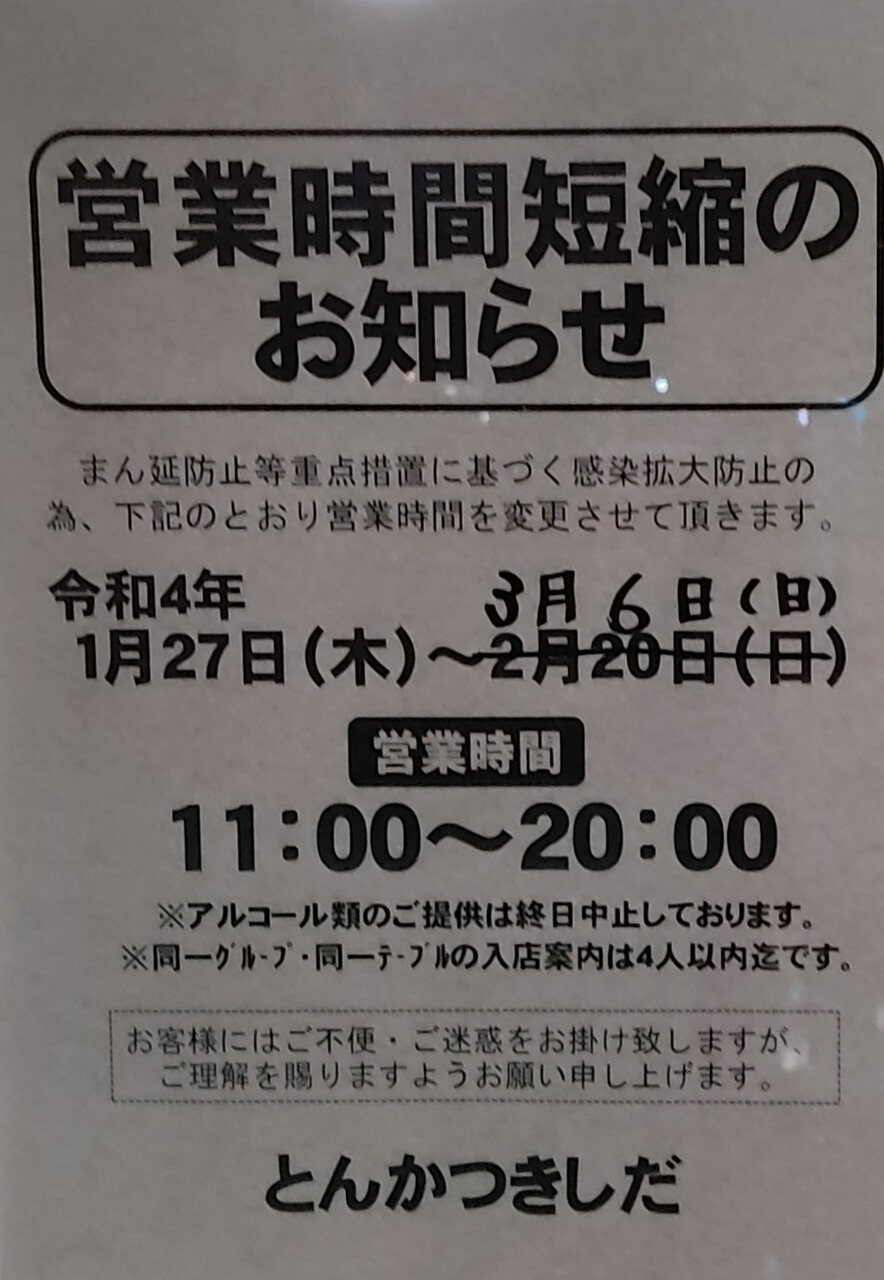 まん延防止等重点措置による時短営業のお知らせです。