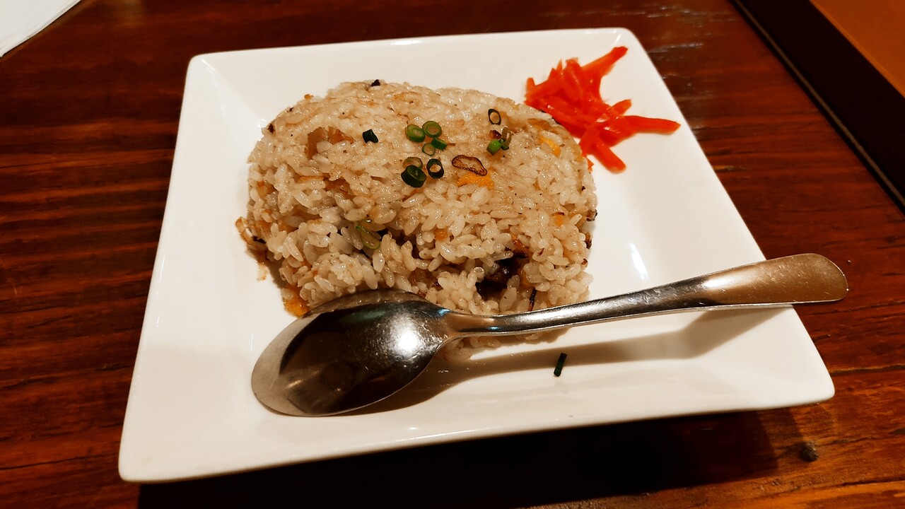 食べ進めますと脂っこくウェットで しっとりしたチャーハンで味付けは結構濃いめでずがラーメンのスープで美味しく頂く事ができました。