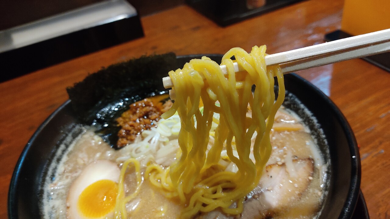 中太な麺に熱々スープが絡まり美味しく頂けます