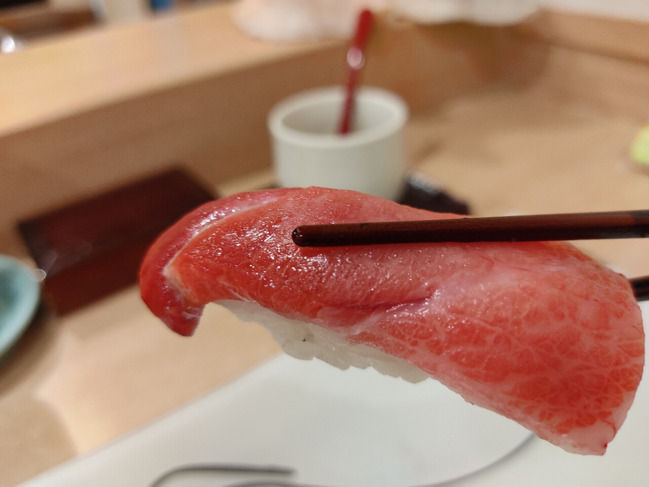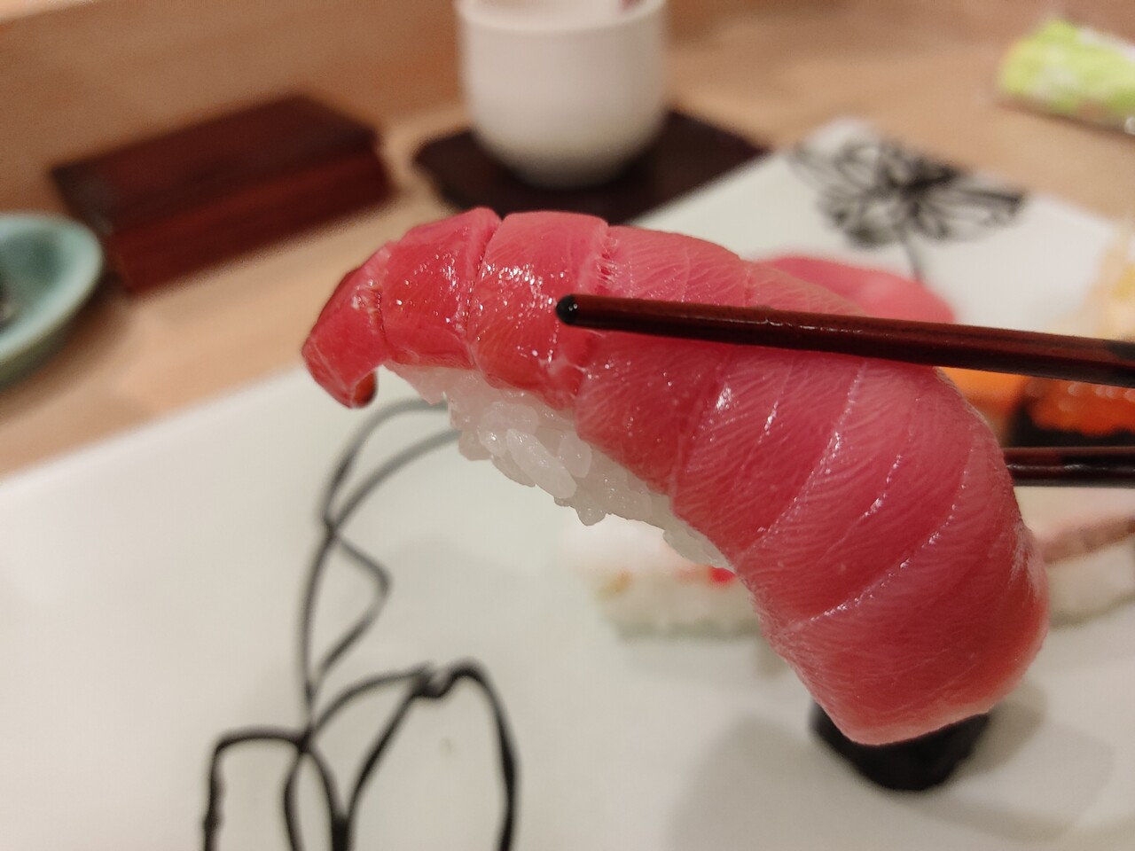 口に含み噛むと 甘い脂が口の中に広がりその脂は後を引かずに もう10貫ほど余裕で食べられる美味しいトロでした