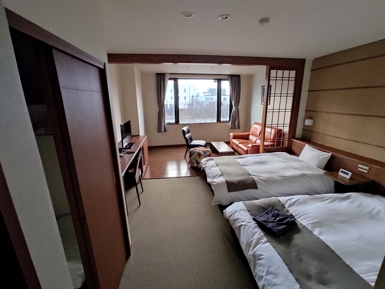 今回の部屋に向かいますと洋室ベースのベッドが2つあるお部屋を独りで占拠