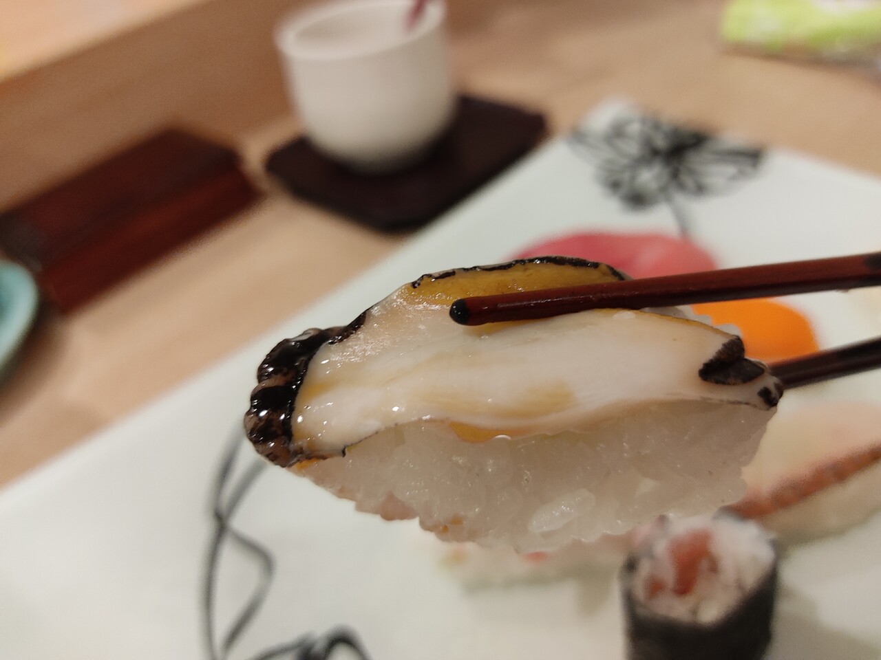 鮑の握りも頂きましたが コリコリっとした食感が生の鮑の特徴ですが 美味い