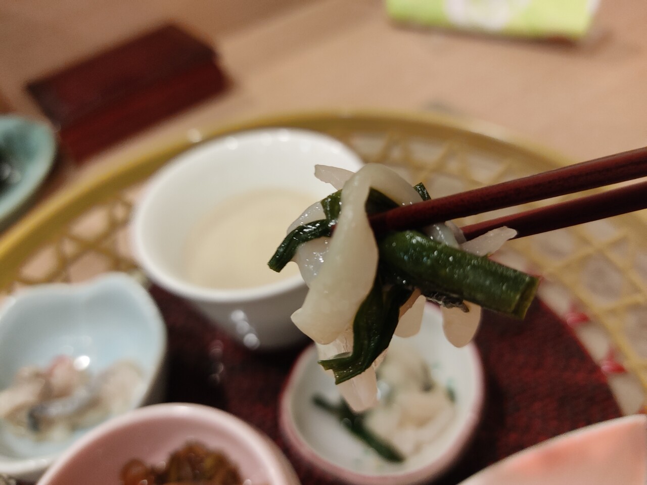 こちらは イカとニラの和え物になります