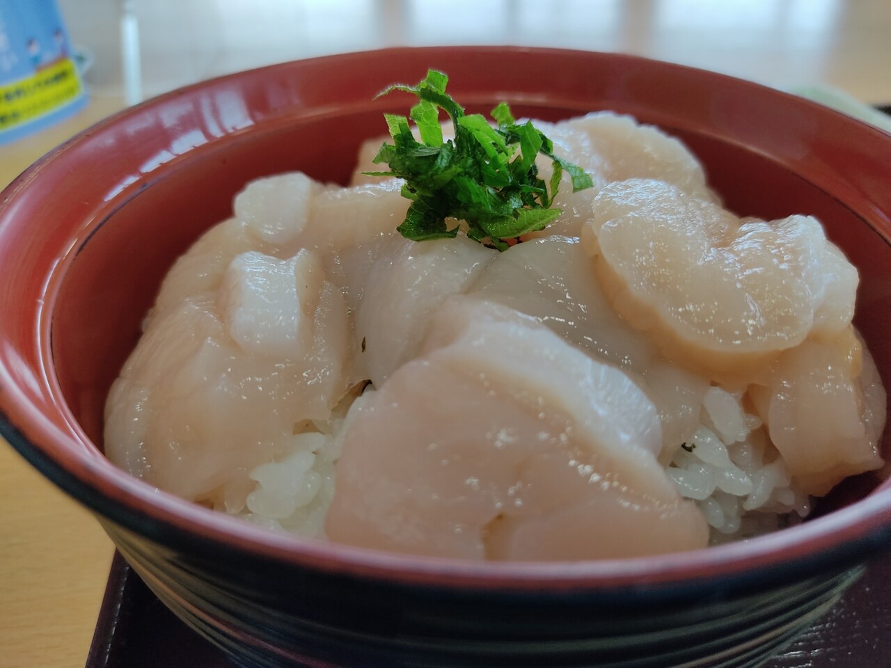 そして待つ事5分程で ホタテ丼が運ばれてきました。