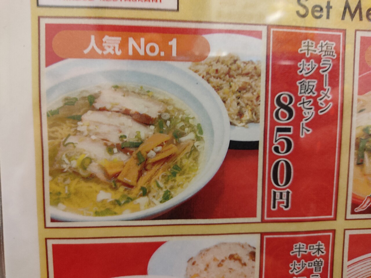 取り敢えず何をオーダーして良いものか考えるのも疲れそうなので素直に人気No.1の塩ラーメン半炒飯セット(850円税込)をオーダーする事にしました。