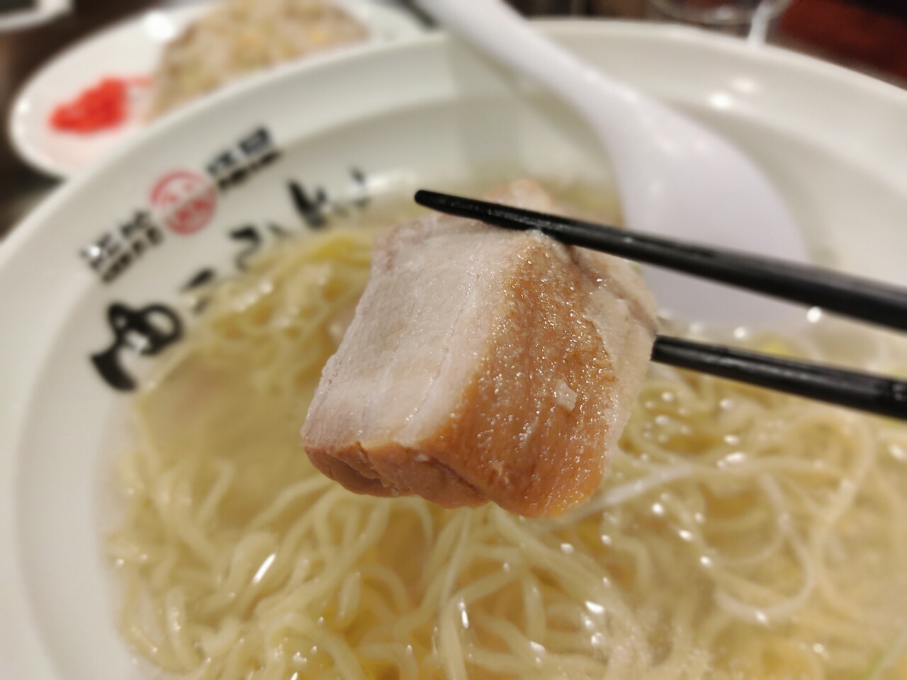 チャーシューは厚めのものが3枚入っており ほろほろ系ではなく歯応えがあるチャーシューとなっております。