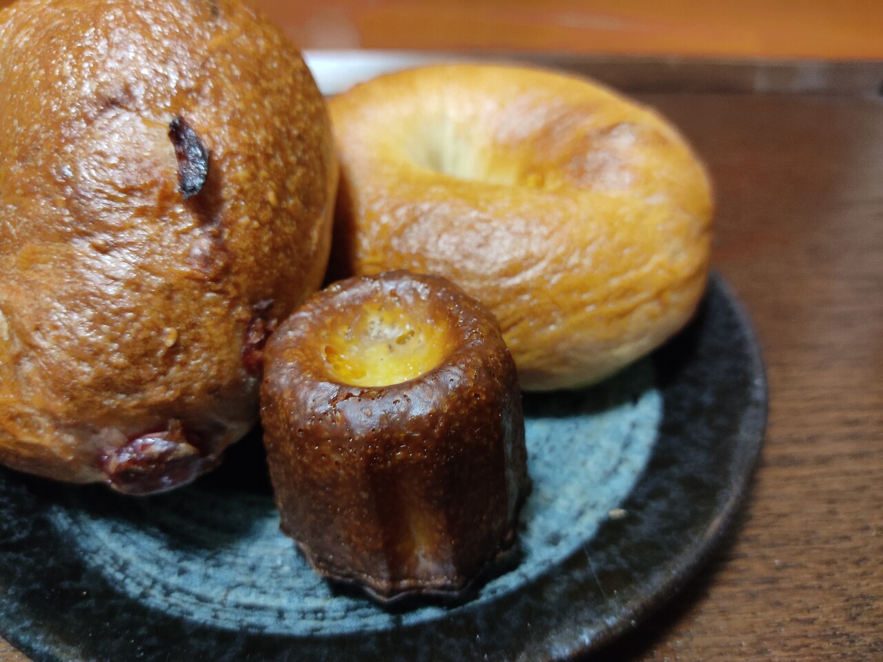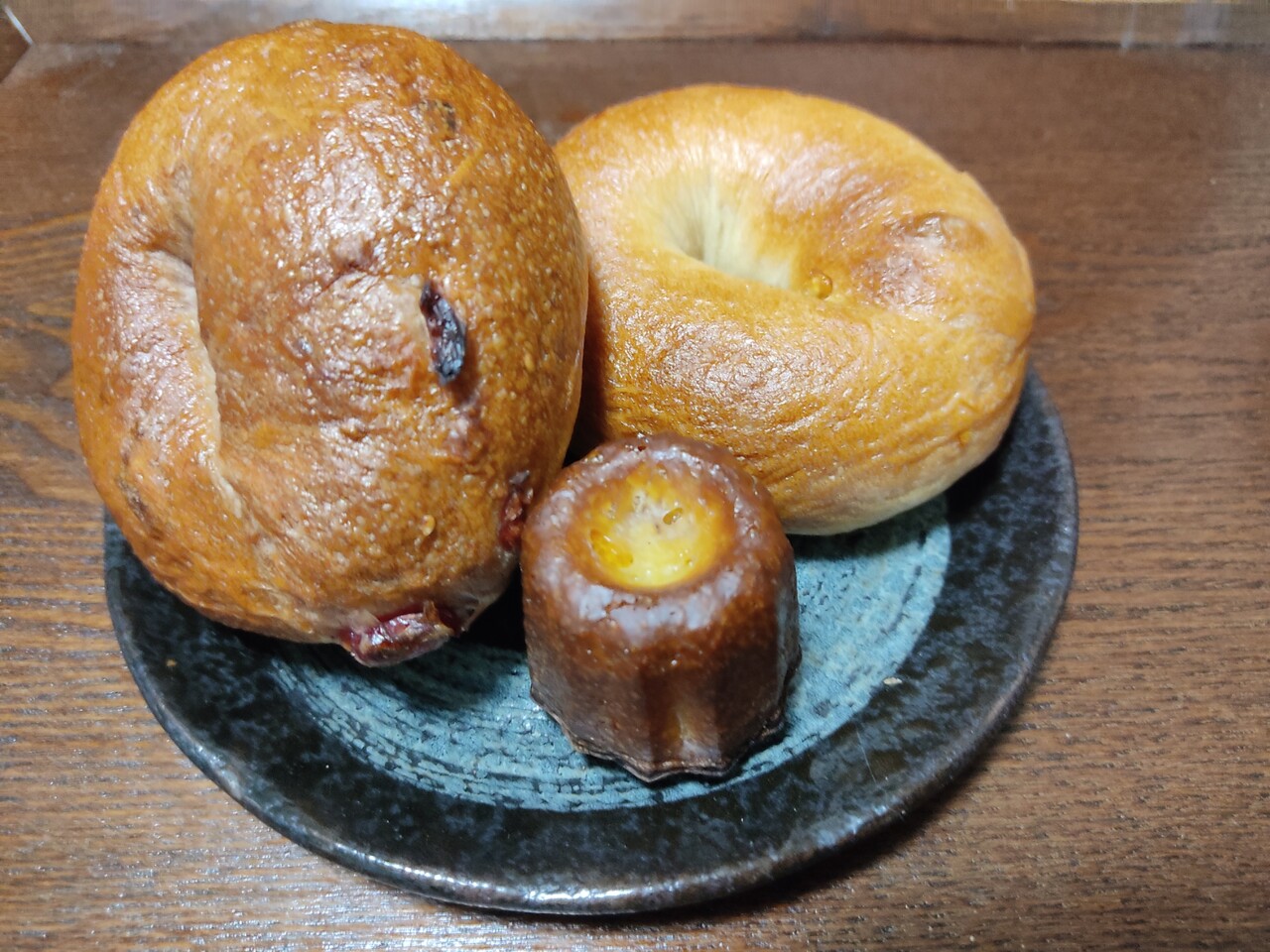 取り敢えず カヌレの柑橘とベーグルの柑橘とブルーベリーの3点を購入し