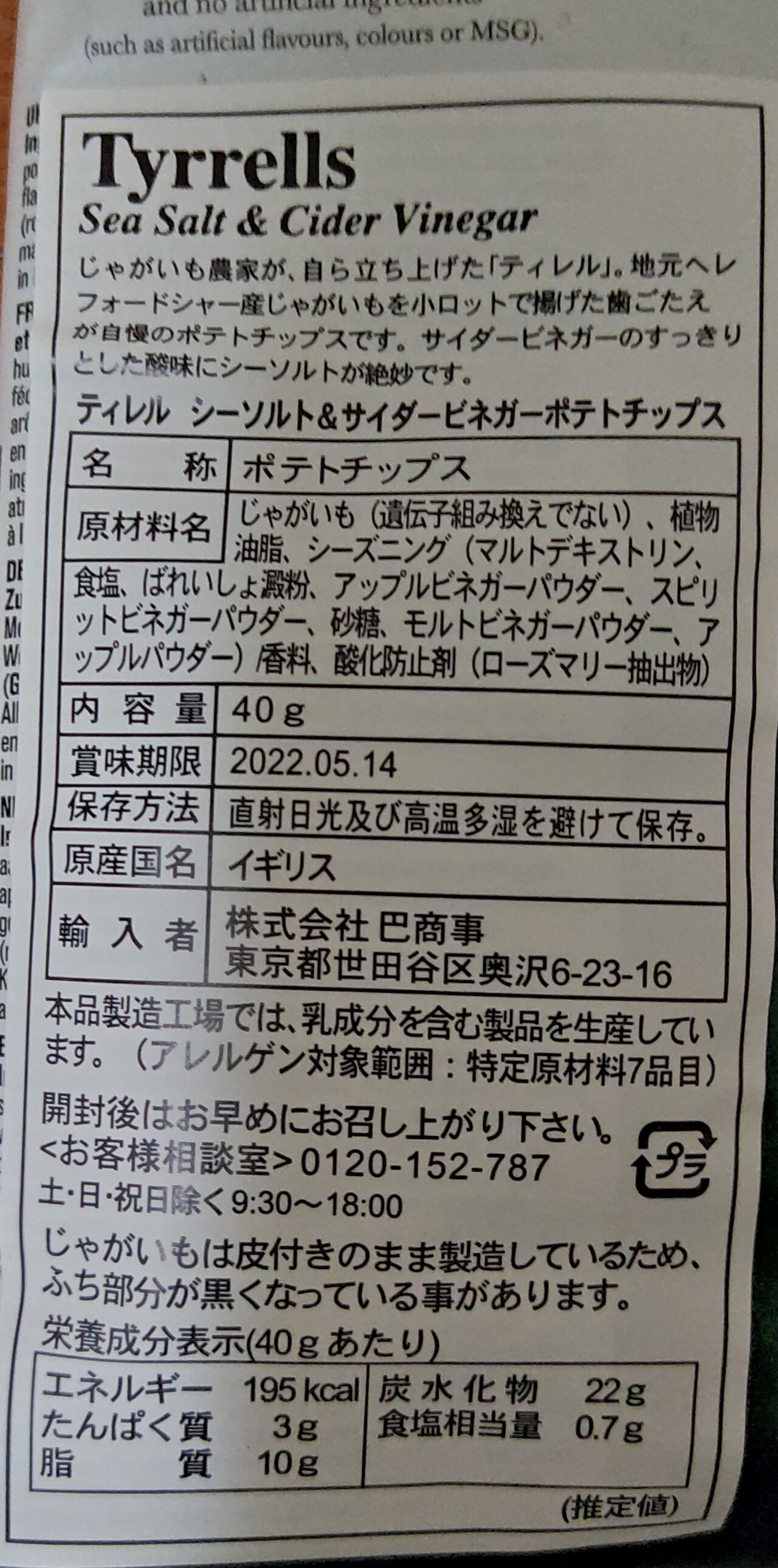 塩と酢のポテトチップス