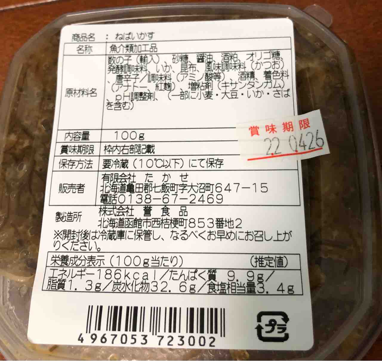 あと たかせ さんの大人の松前漬 ねばいかす (480円)が有り お薦めされたので こちらもカゴに投入します。