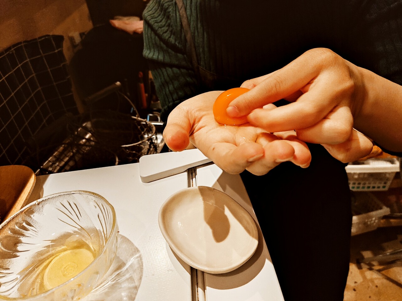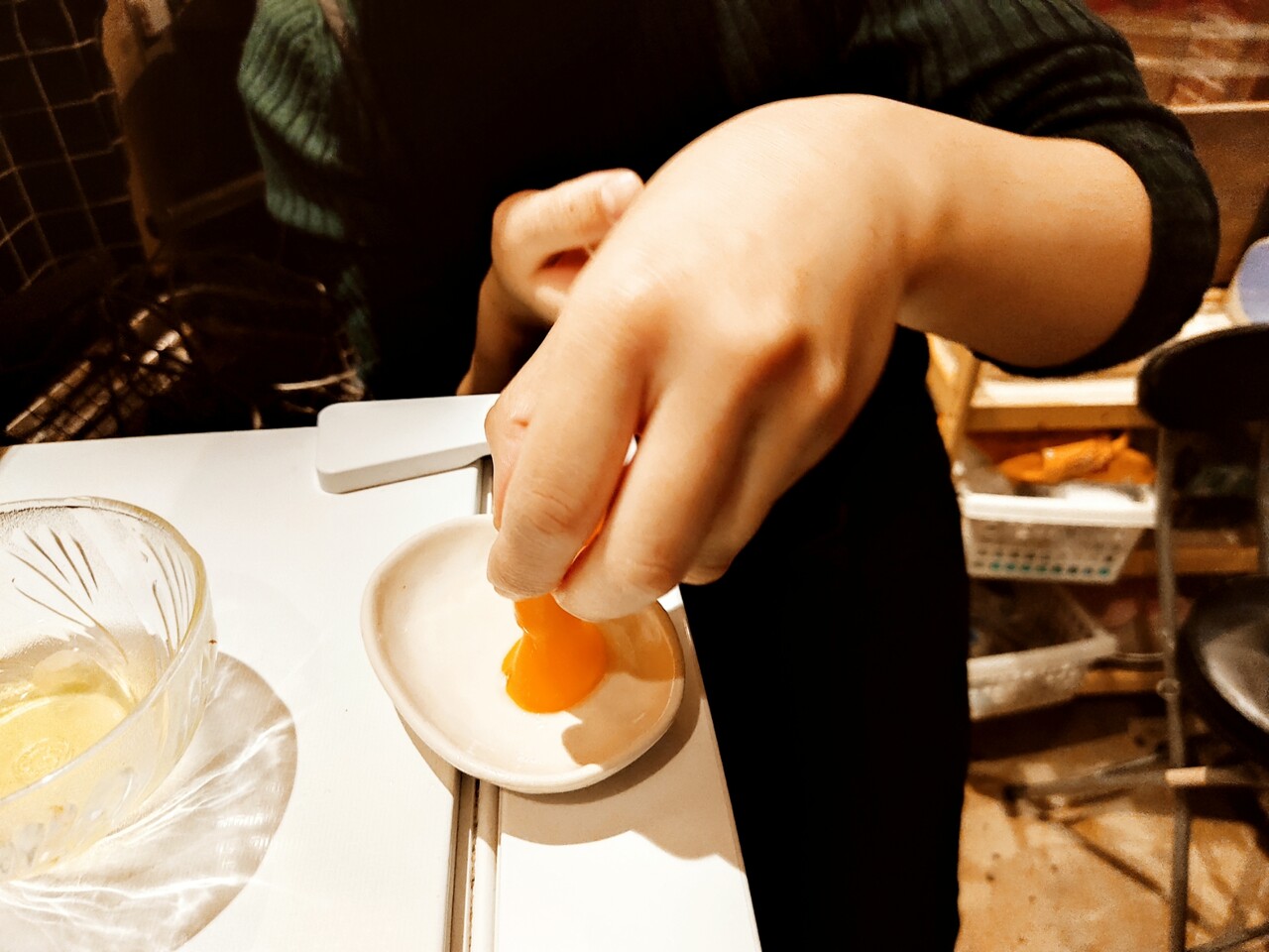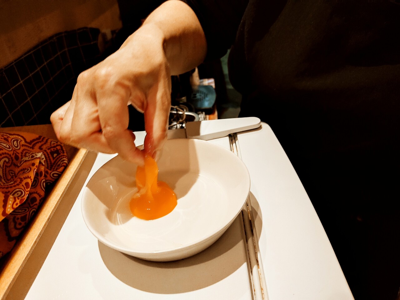 カレーを食べ終えマッタリした後にお土産を持っていったので そのものをお渡ししてお話ししたら 女性だけの青い卵の卵黄掴み選手権が開催されました。