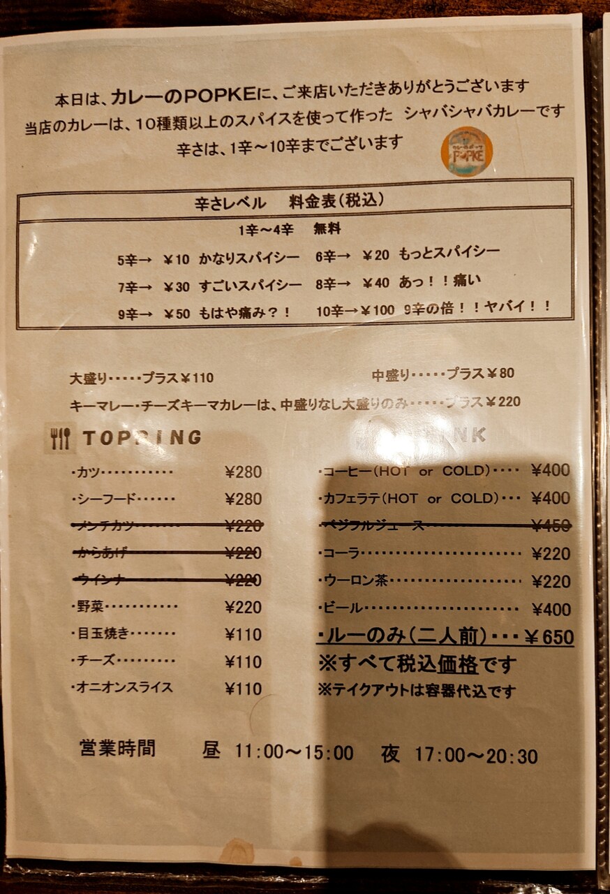 とある日の夜に curry で night な気分になりまして そして ママさんにもご挨拶がしたくなり函館市港町にある カレーのPOPKE さんに伺うことに致しました。
