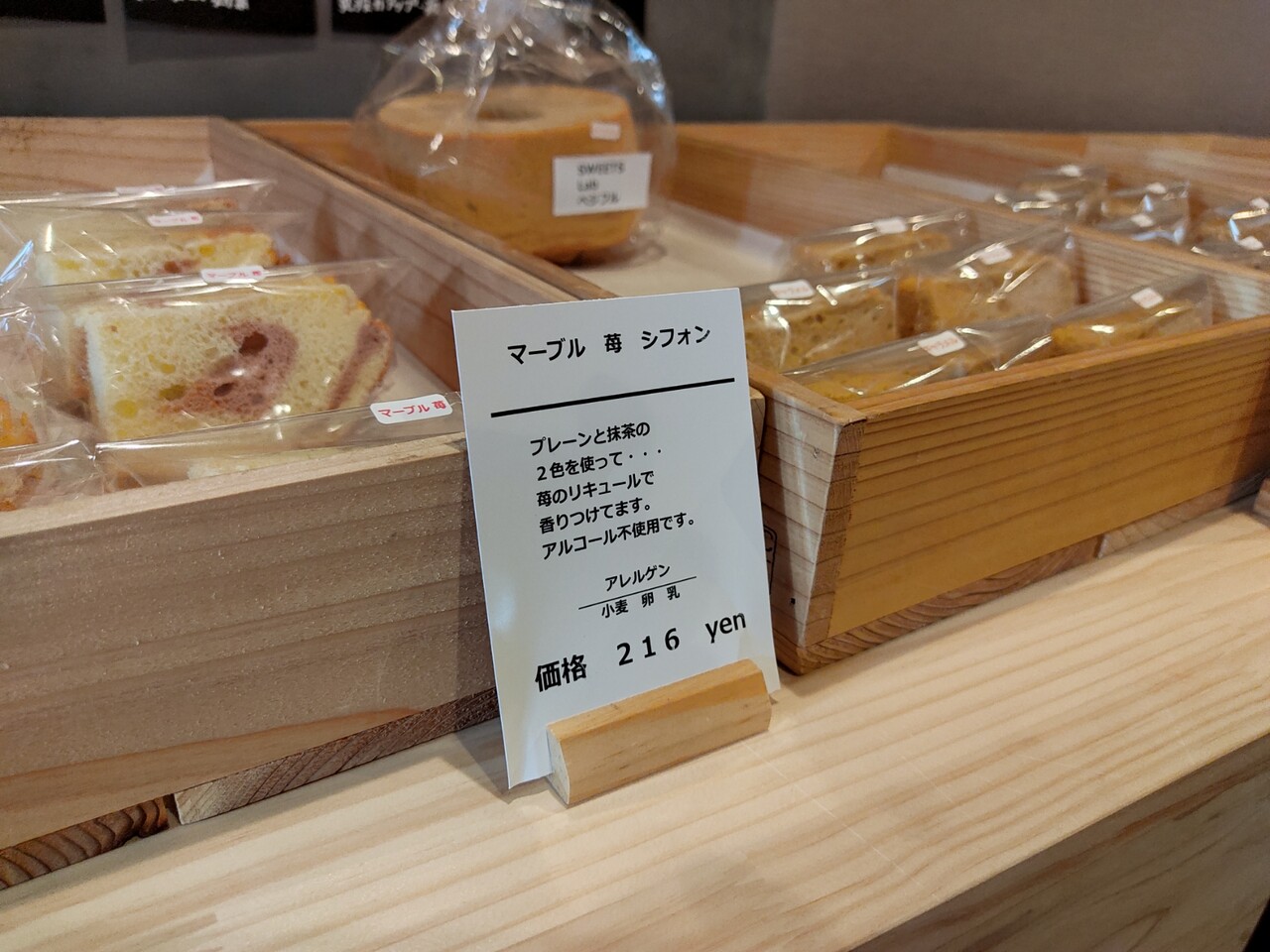入店しますと 入り口からストレート状に色々なシフォンケーキが陳列されておりました。