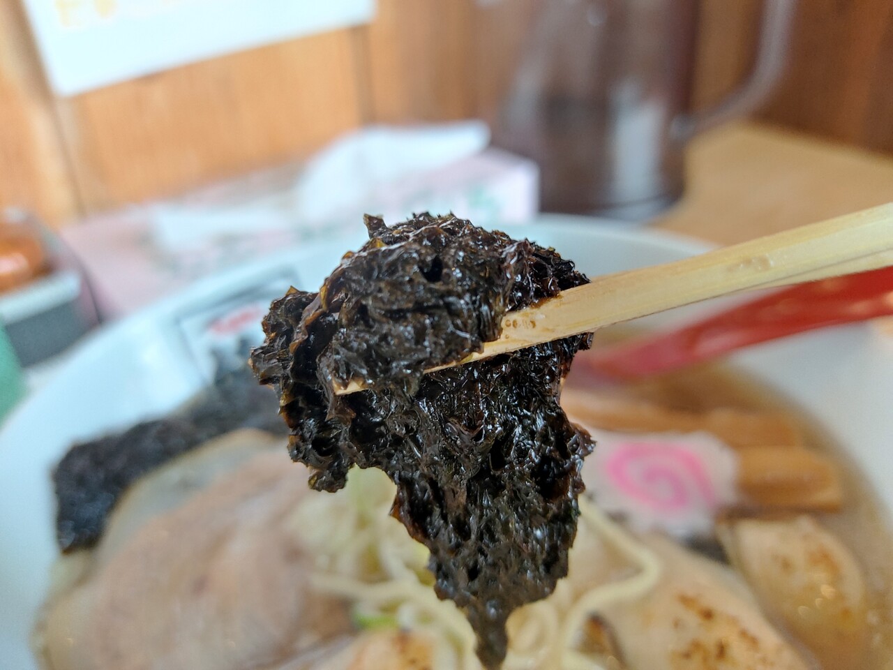 金華豚のチャーシューは脂身が甘く、さっぱりスープに対してのアクセントとしては申し分ないのかなと思います。