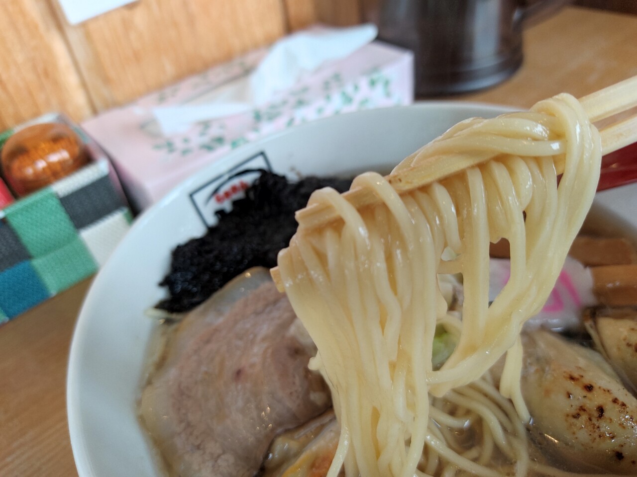 スープは少し濁りはあるけど澄んだスープで牡蠣と煮干の出汁がとても良いです。