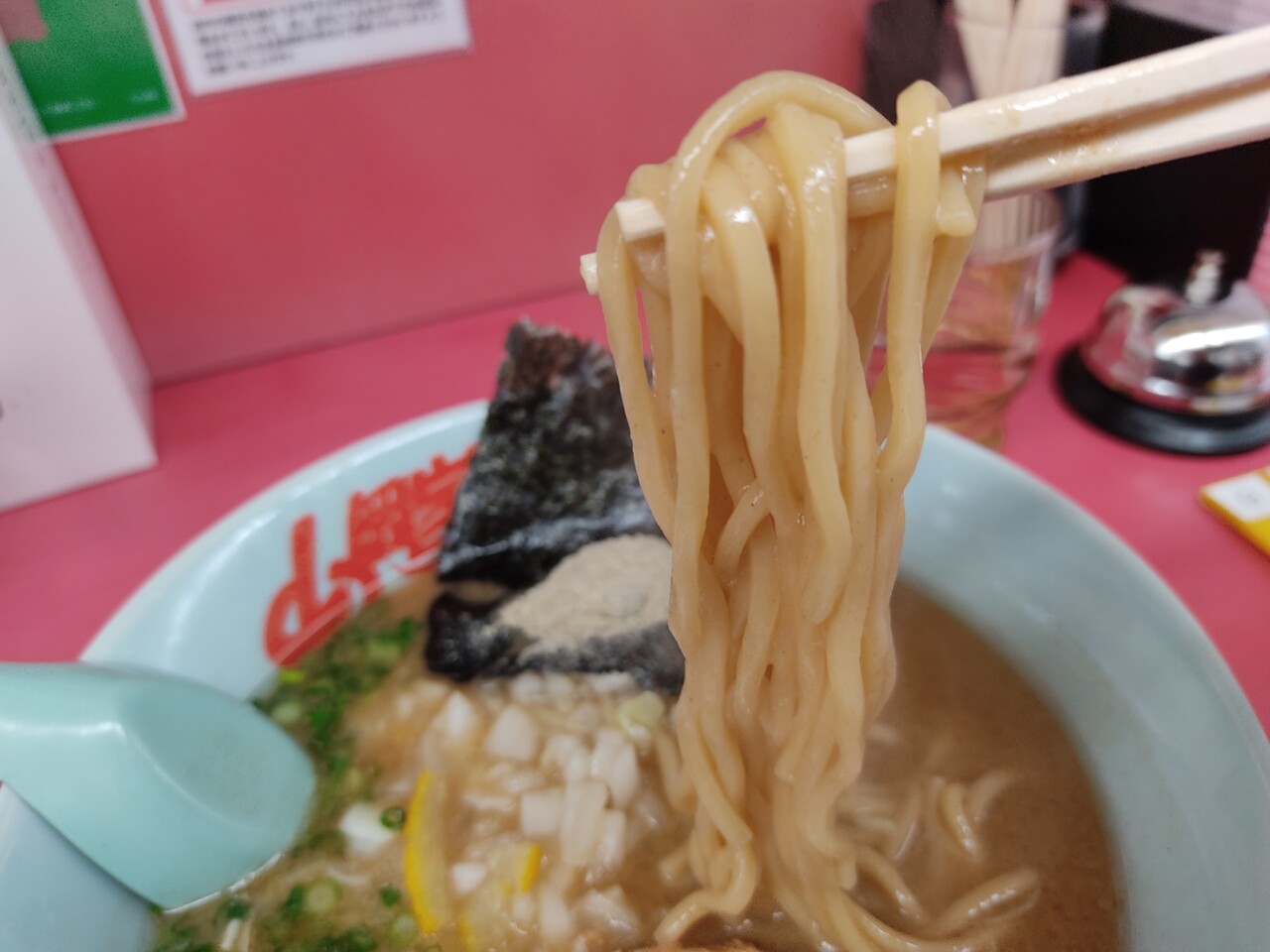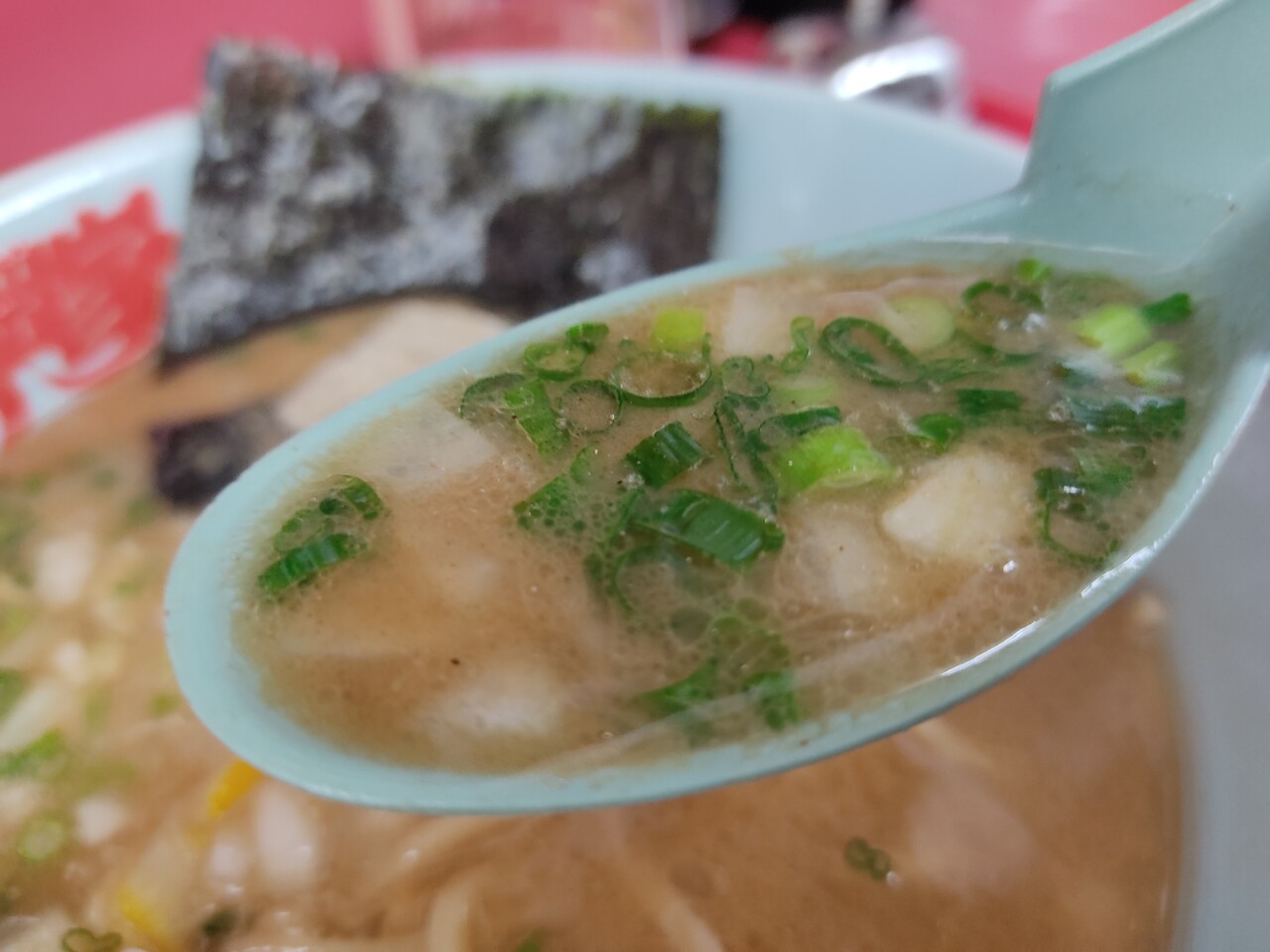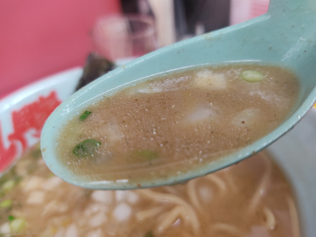 スープは脂を普通にしているので個人的にこの位がちょうど良いです。そして玉ねぎのシャクっとした食感が好きです。