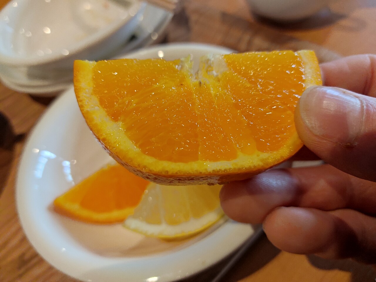 フルーツのオレンジ、グレープフルーツを食べ〆となります。