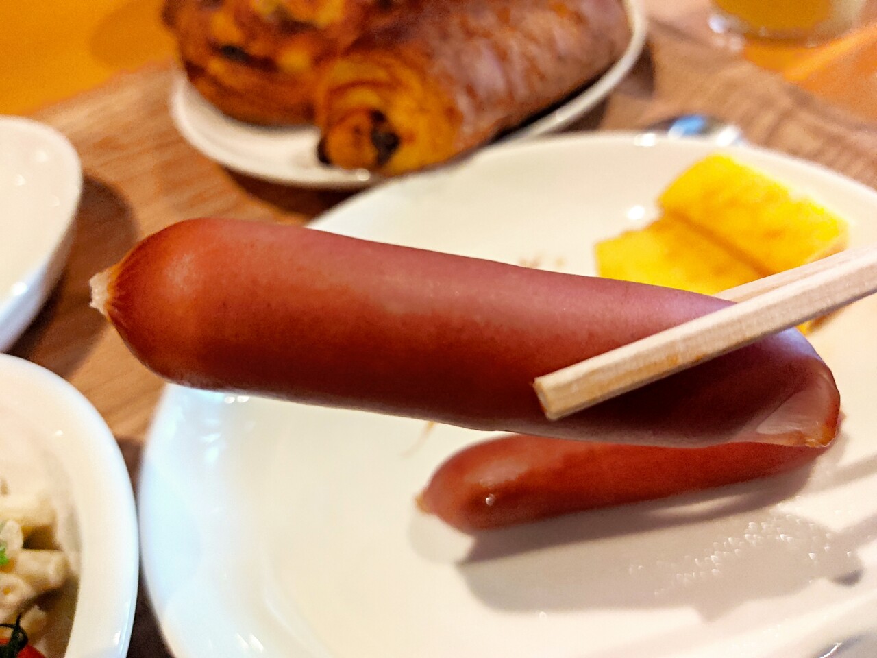 あらびきウインナーは 皮はパリっとして食感がよぬ良く朝食ビュッフェにあると 絶対に食べてしまうやつですね
