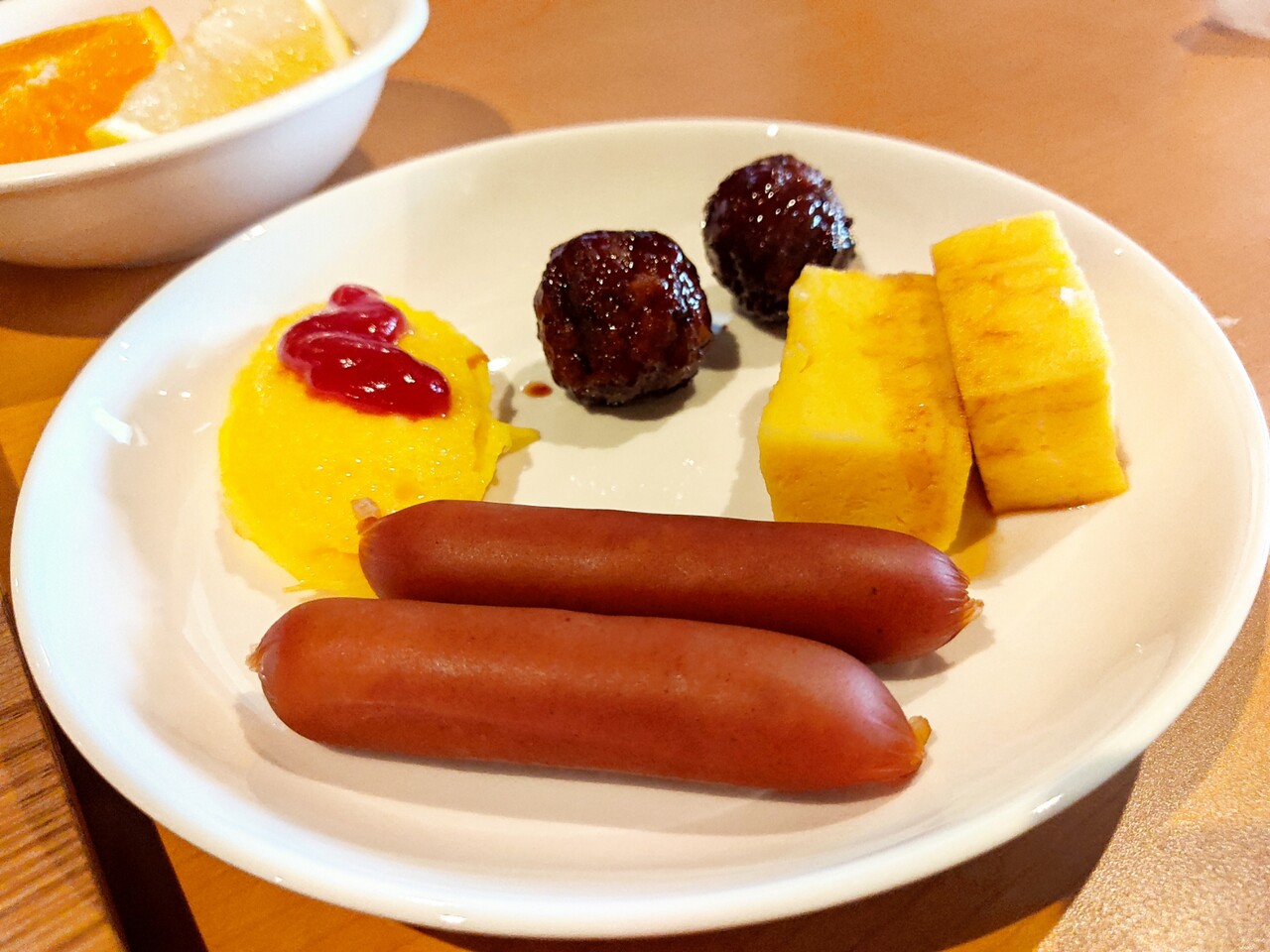 以上が持ってきた朝食になります。これがほぼビュッフェのコンプリートになります。