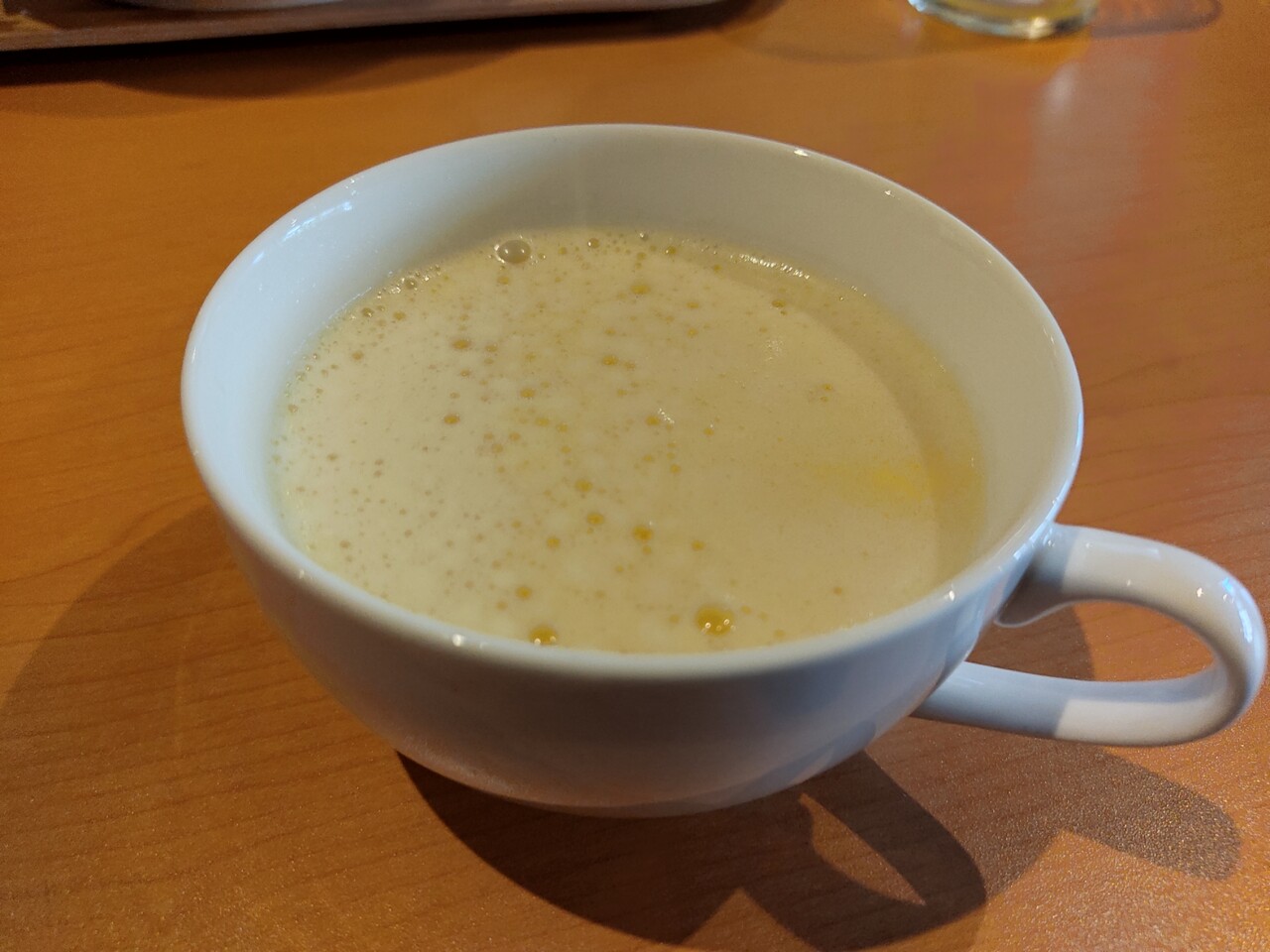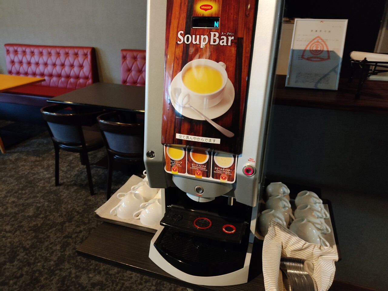 スープバーの装置からポタージュを押下して入れて飲んでみたら あら意外に美味しい