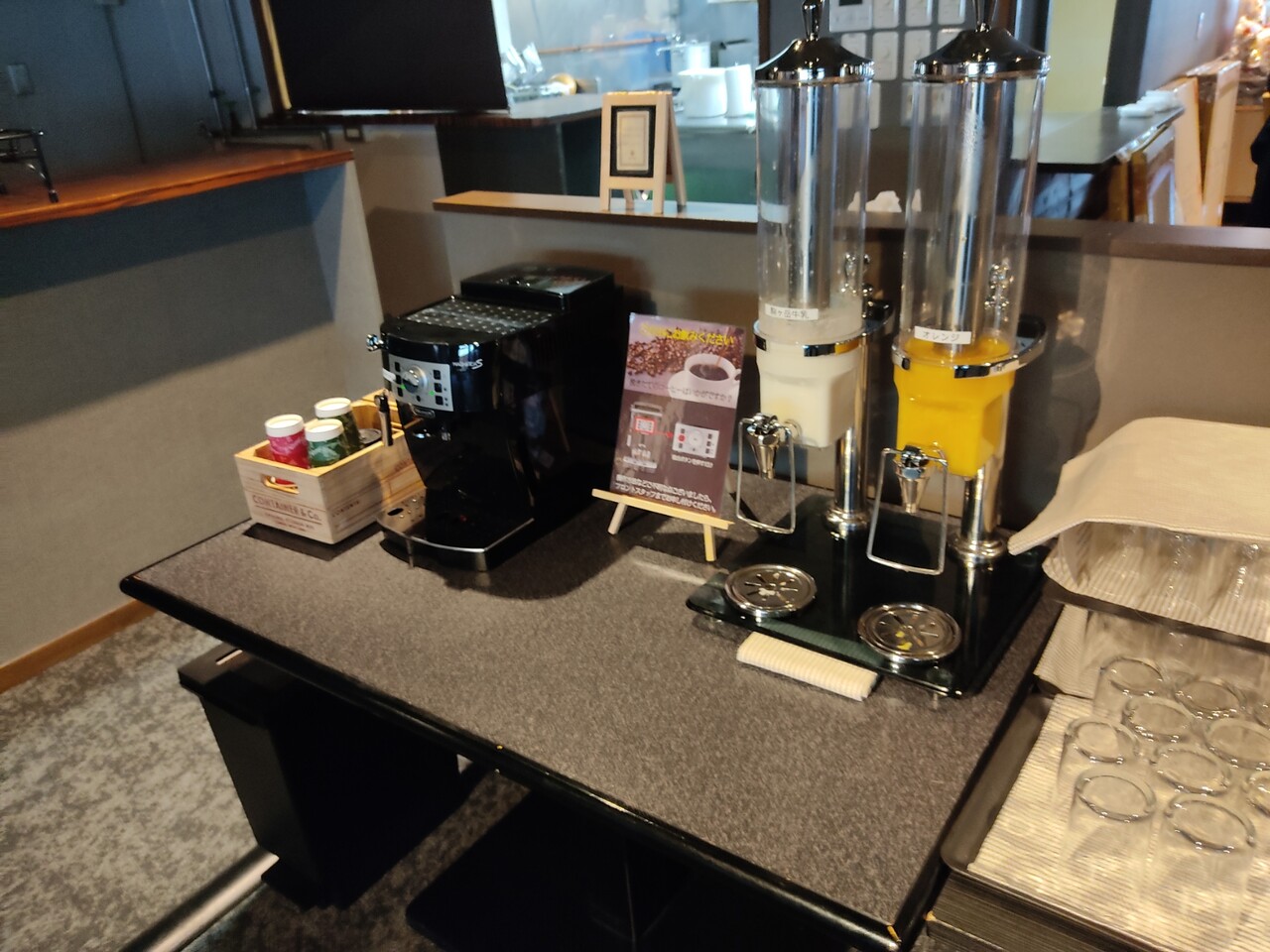 その横にはコーヒーと駒ヶ岳牛乳、オレンジジュース、そしてお水がありました。
