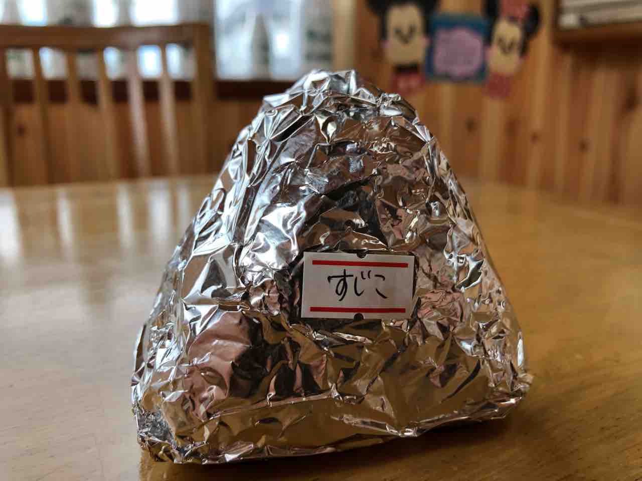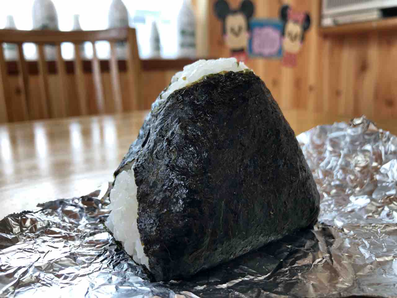 アルミホイルを剥いて おにぎりを頂いていきたいと思います…