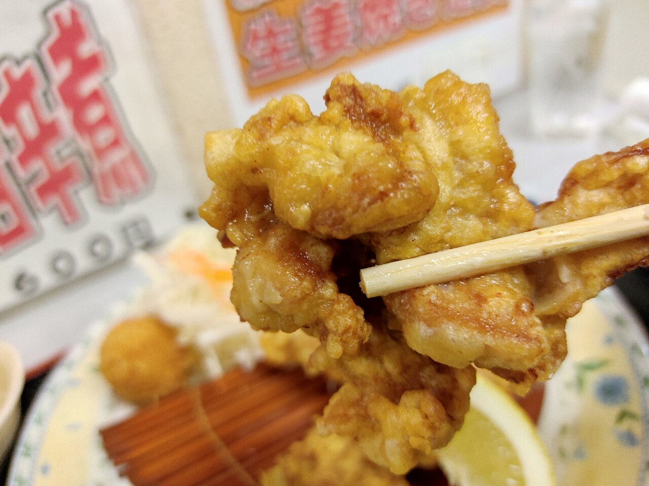 鶏肉がジューシーで醤油ベースの下味がすごく良く美味い!