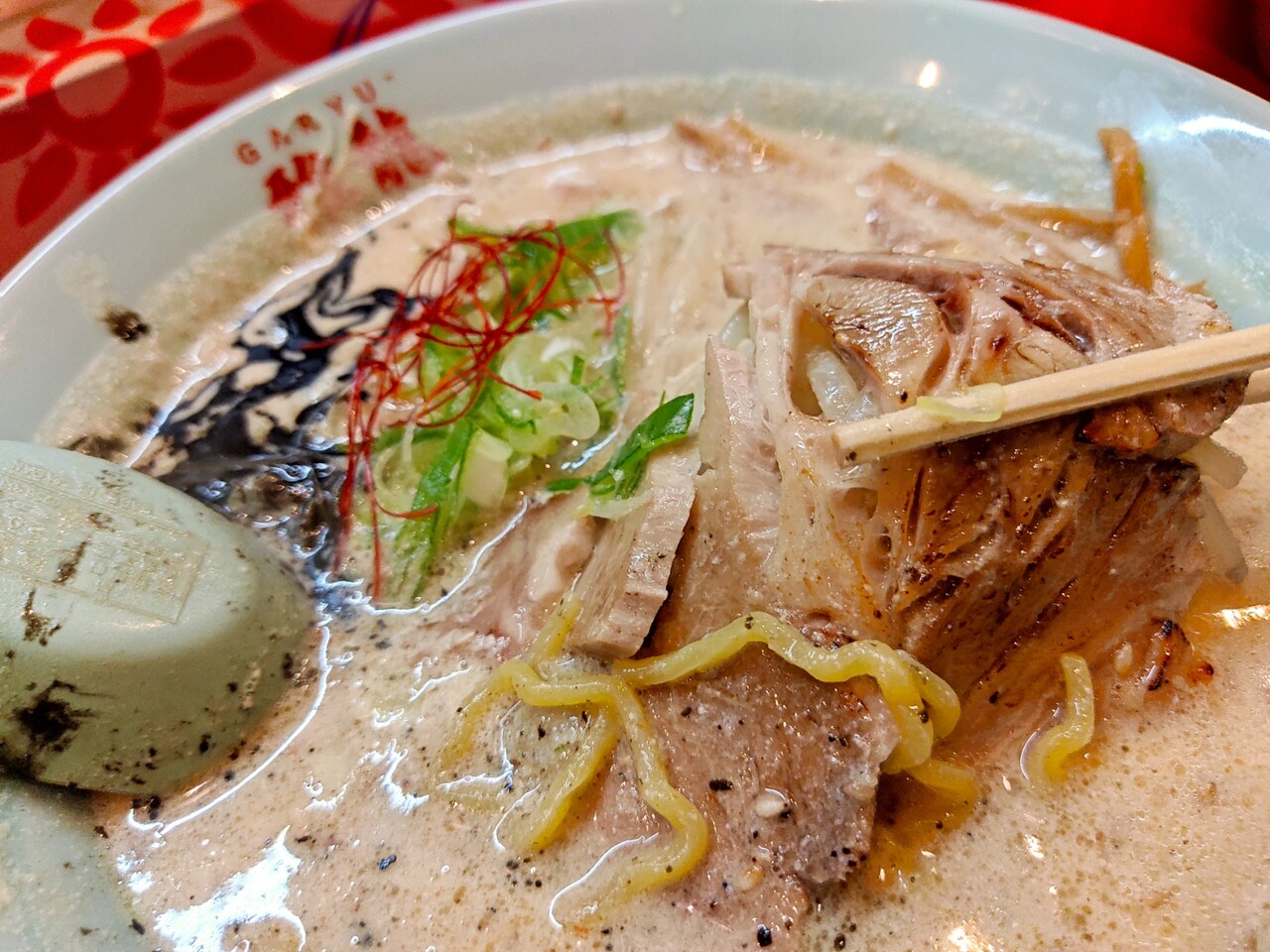 チャーシューは1枚が大きく持って写真を撮ろうとするも崩れていき 結果この写真になります