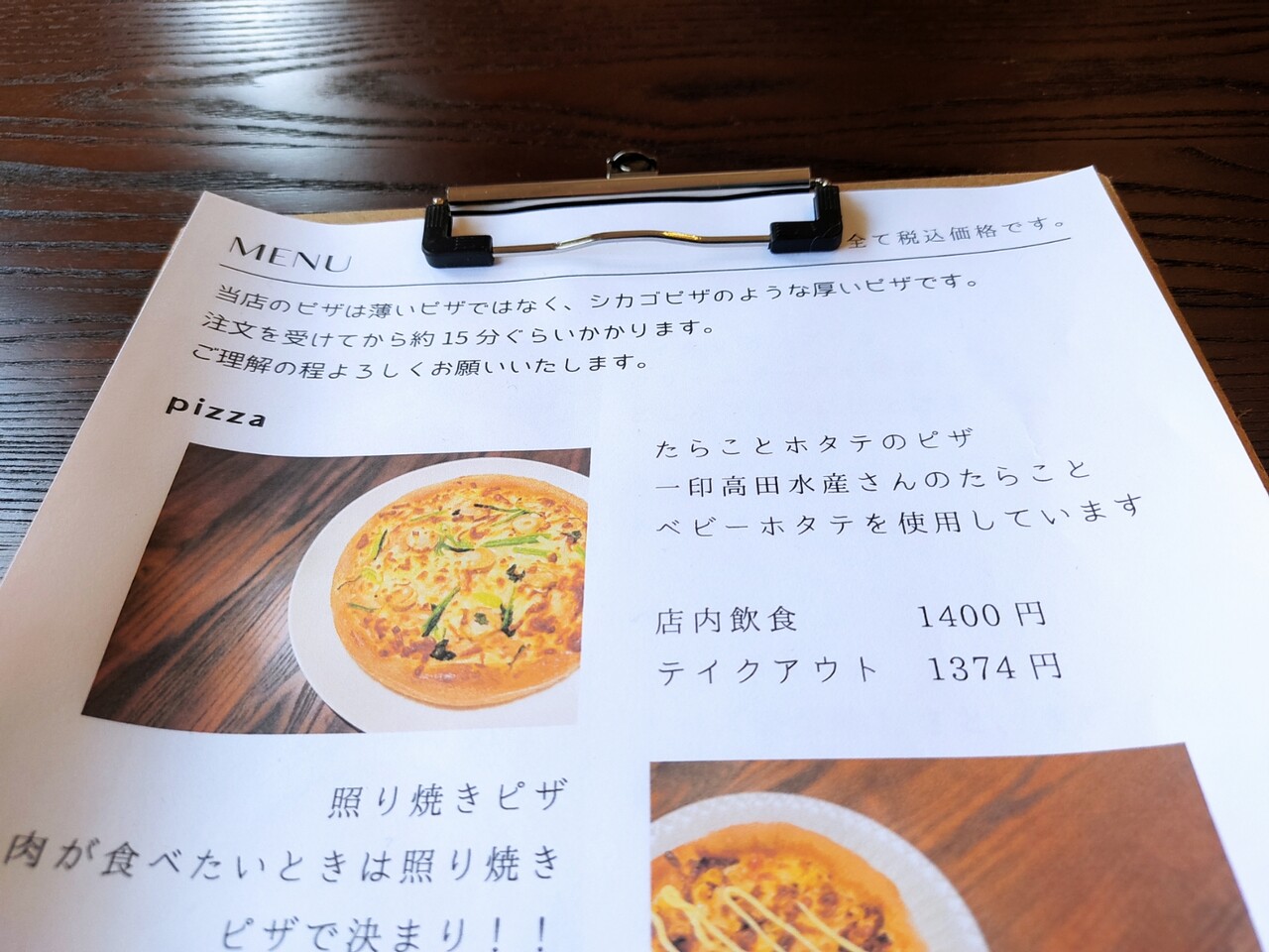 そして15分ほど経過した頃合いに たらことホタテのピザも運ばれて来ました。