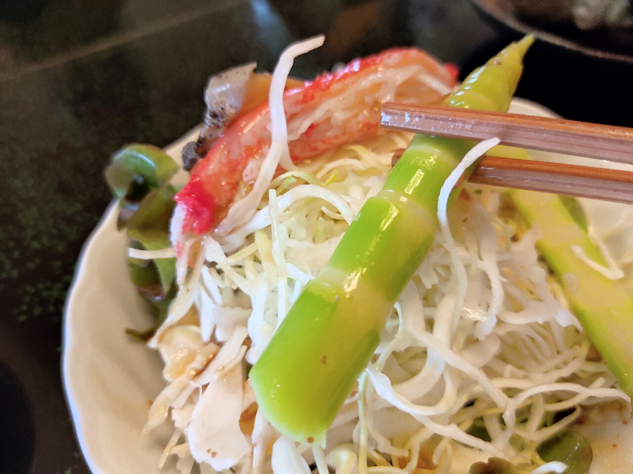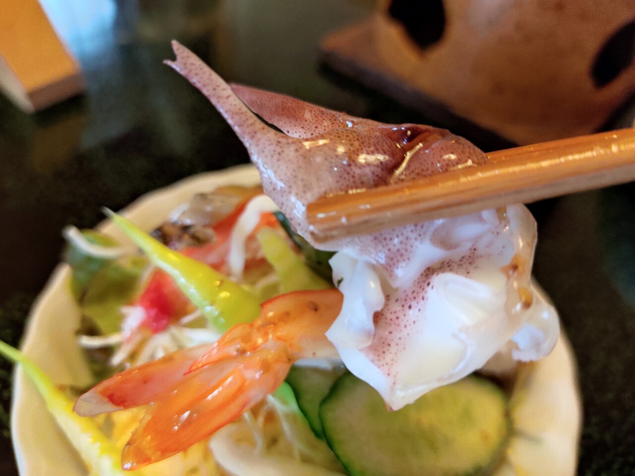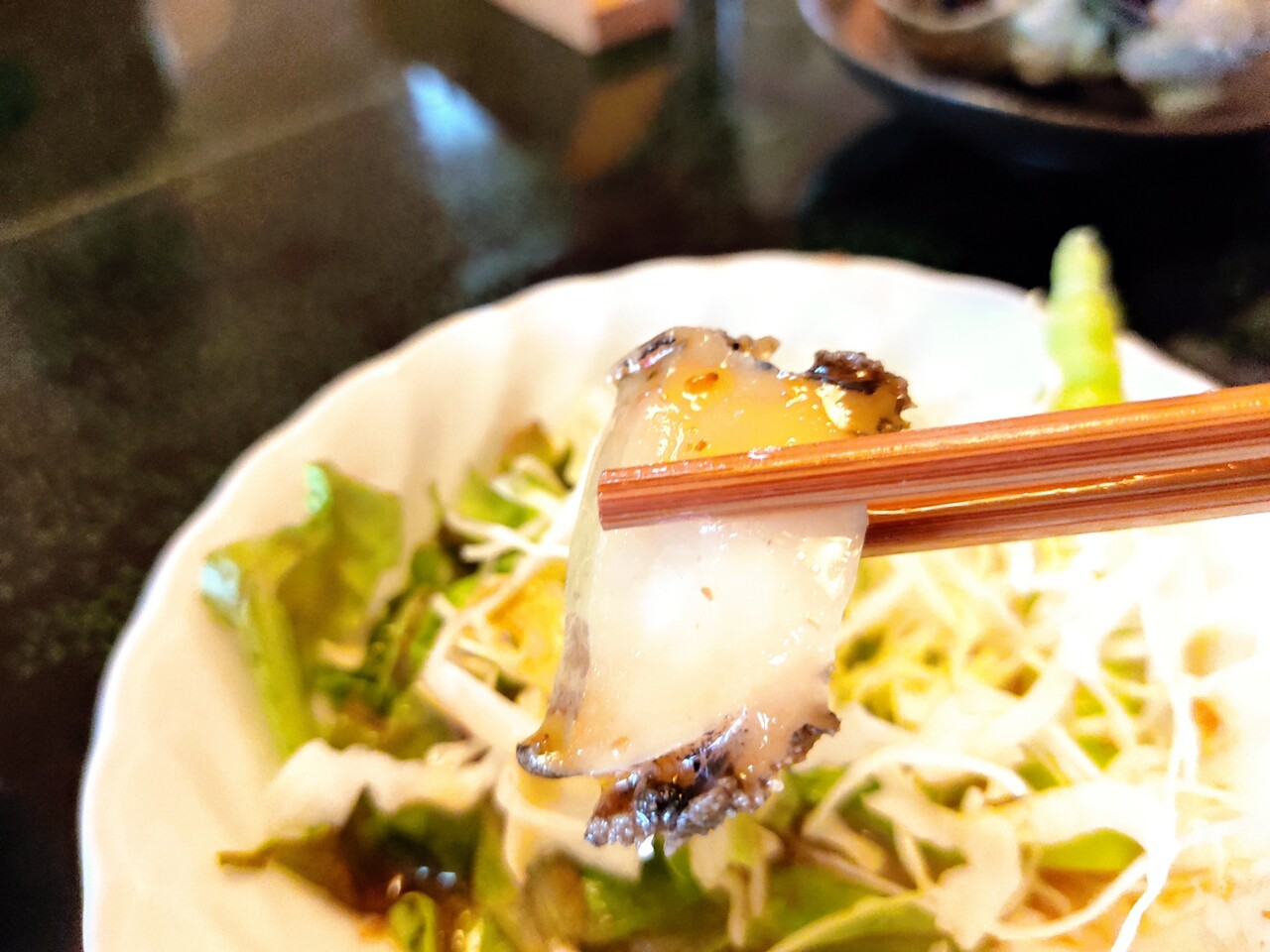 サラダに鮑が入っているなんて信じられませんよね?