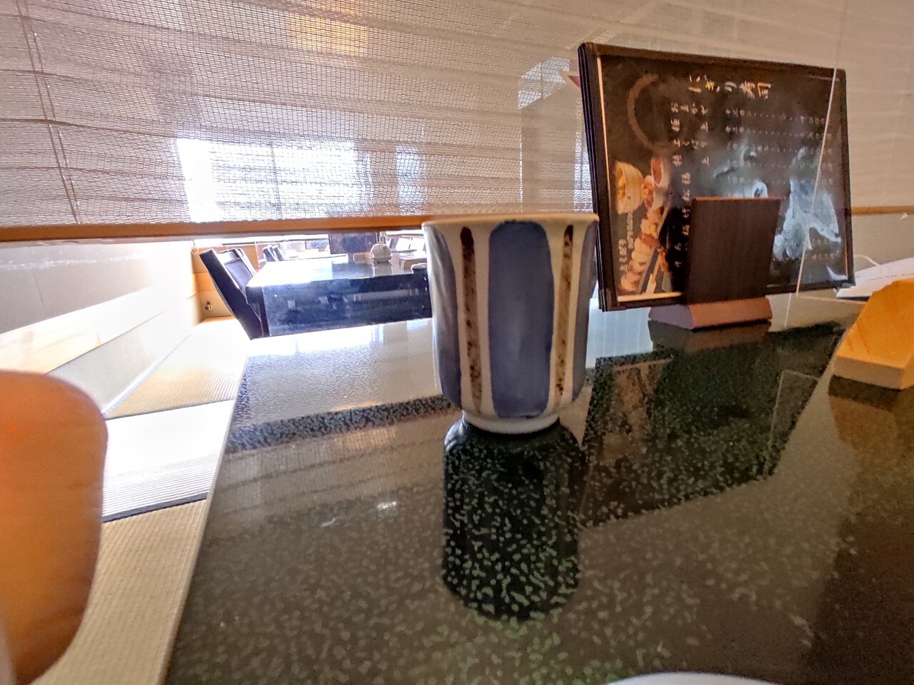 席に座しお茶を頂き