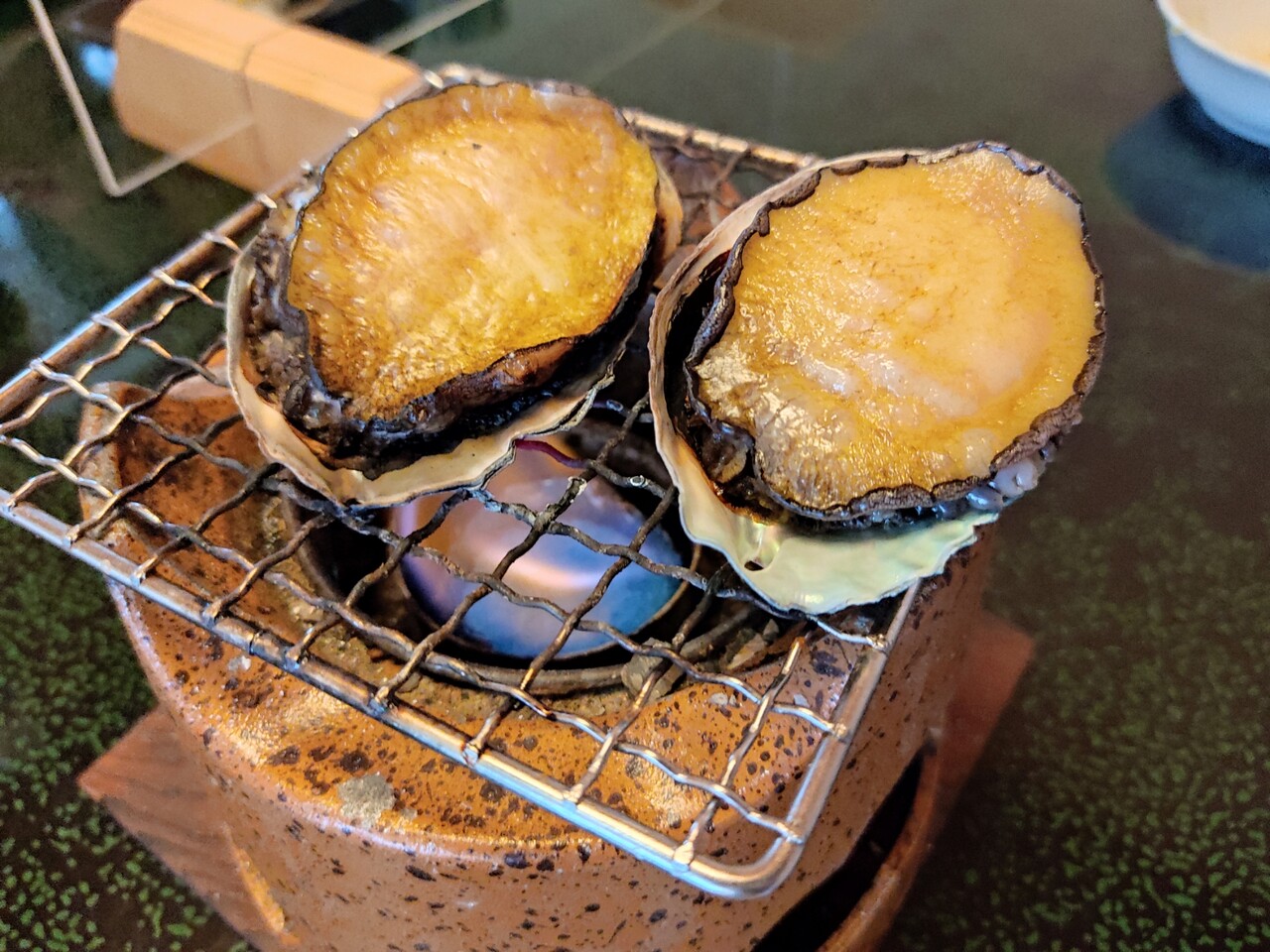 席に座してから直ぐに 鮑の踊り焼きが運ばれてきました