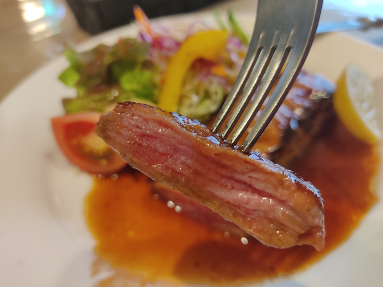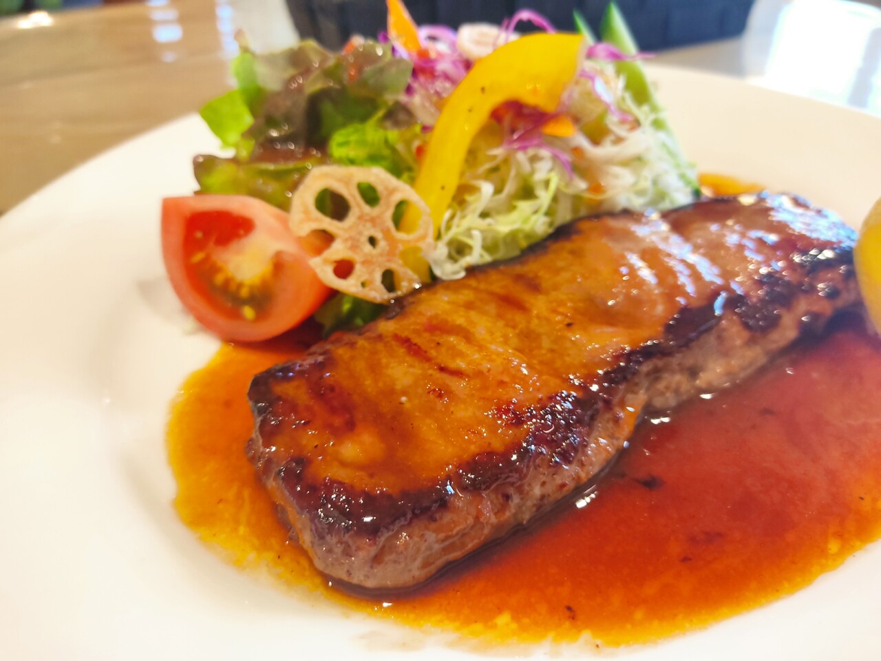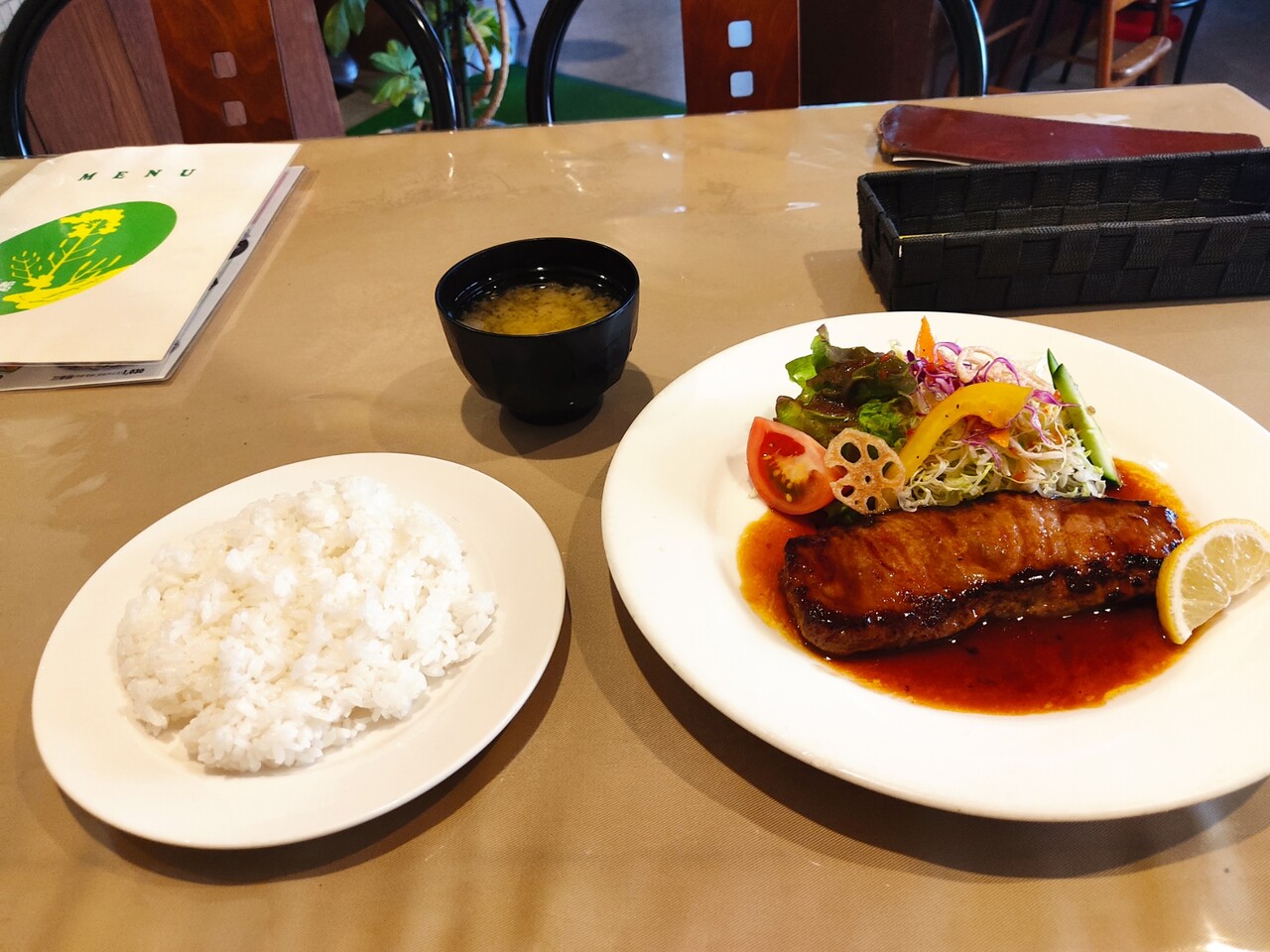 全体的にメニューは少し高めではありますが 食べ終えて思ったのが1,400円で ライス、ステーキ、サラダ、味噌汁の内容は 悪くないのかなと思います。