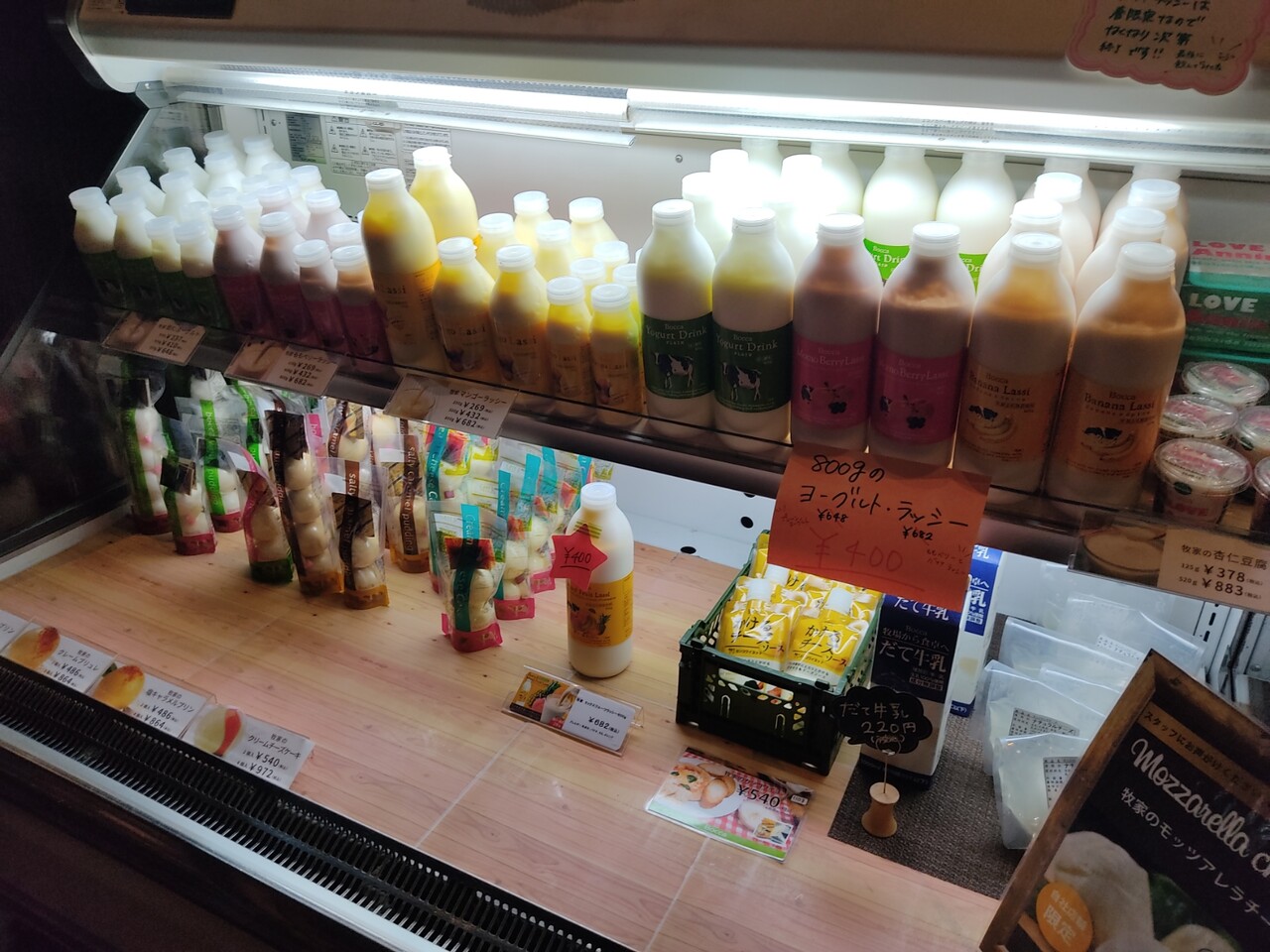 店内で販売されているヨーグルトを見てみると 大好きな モモベリーラッシーがあったので