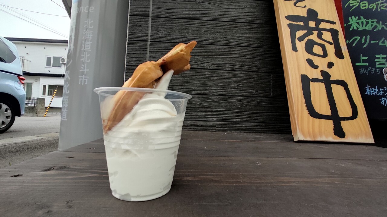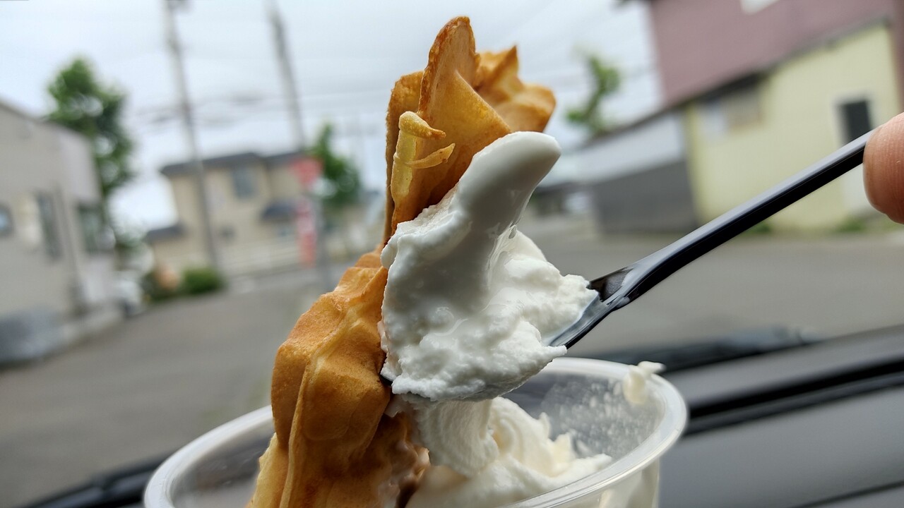 控えめなソフトクリームにばきばき甘い餡子はとても合います美味っ