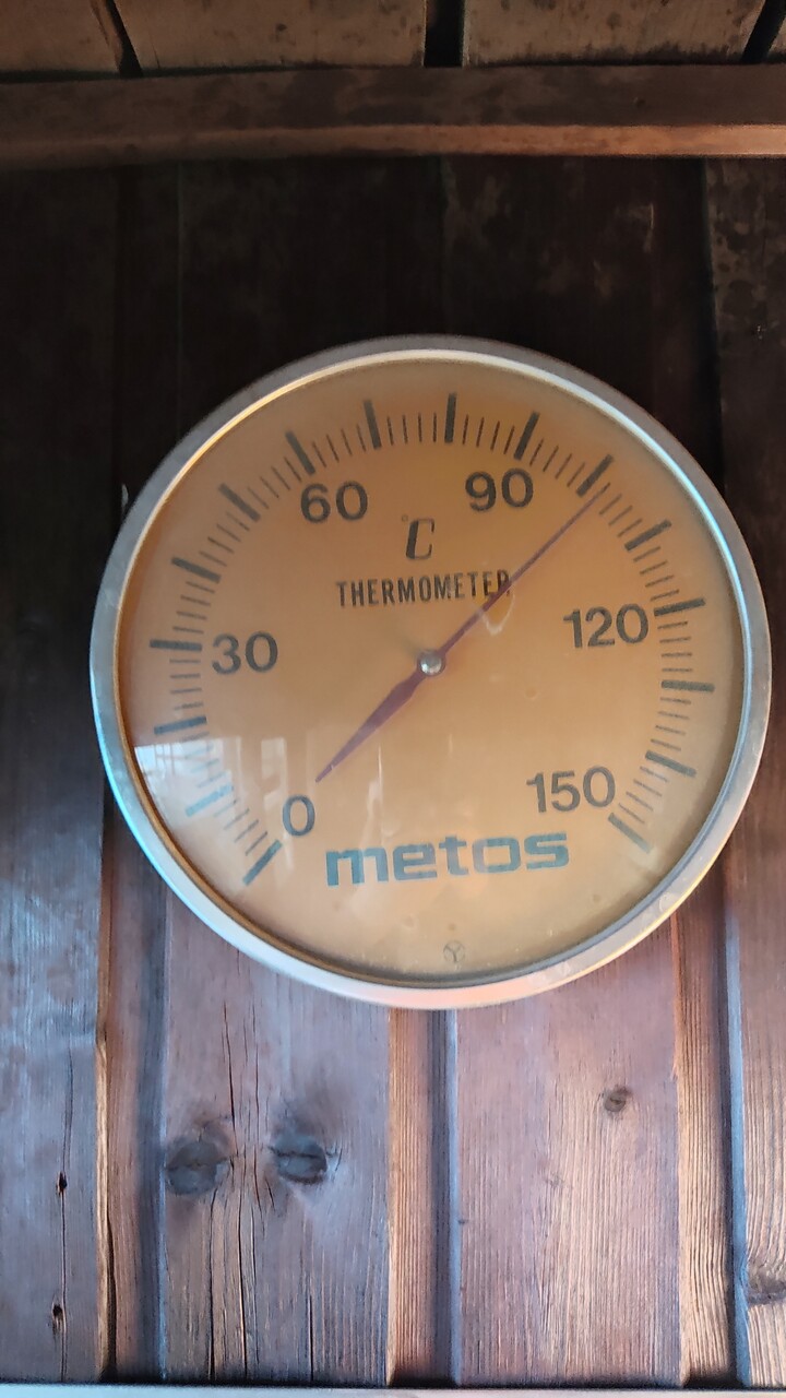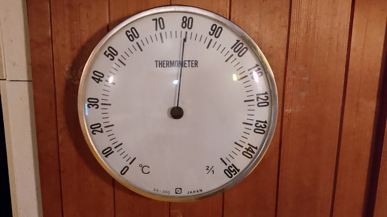 温度は102度!! 100度オーバーのサウナは ととのうには最高ですね。身体中の水分が一気に湧き出てしまいそうです