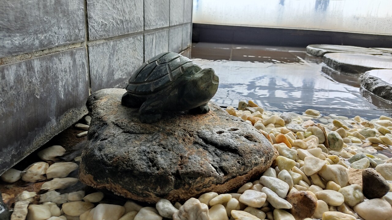 亀の石像可愛いですね。温泉に浸かり癒され 亀でホッコリ これもまた良いです