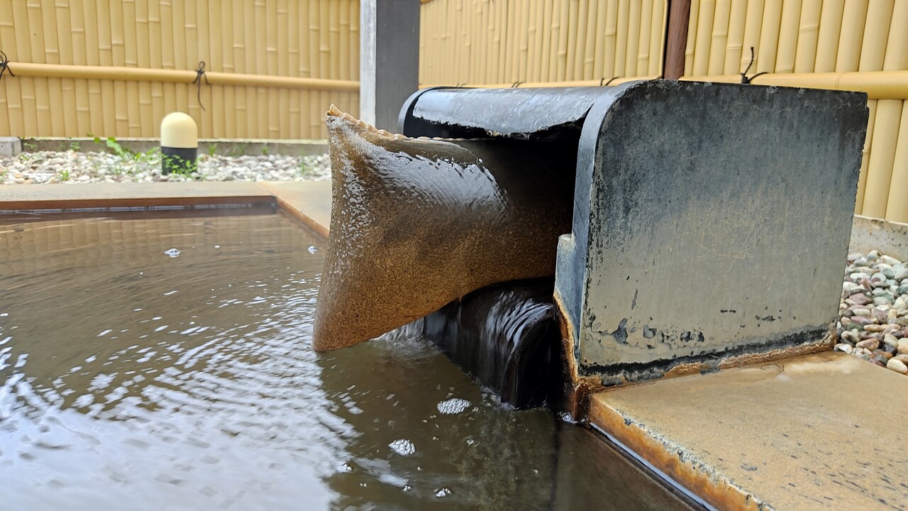 透明なんですが茶色がかっており 軽く塩気のある泉質で 効能としてはお肌がスベスベになり身体の芯から温まるものとなります。
