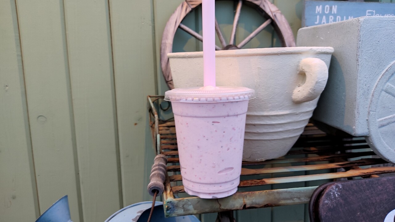 飲んでみると 苺の甘酸っぱさを味わえる美味しいシェイクにになります。すごいハマりますよ。